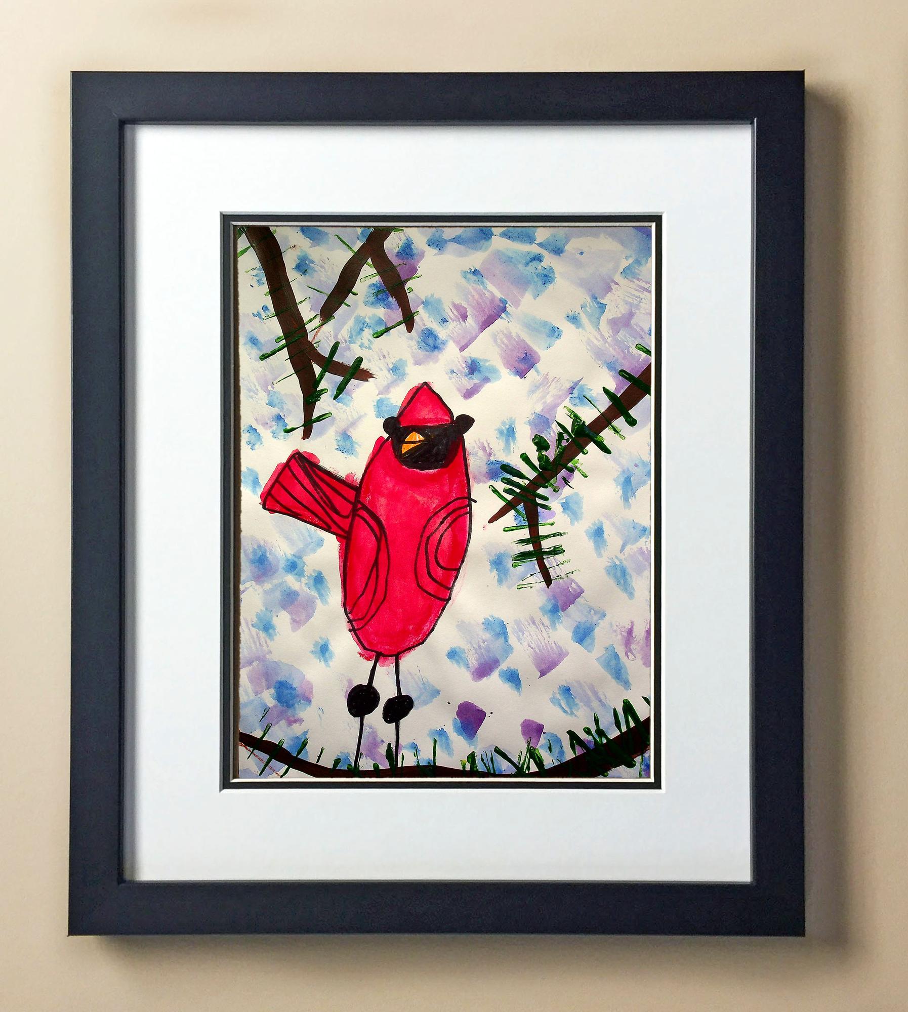 Included with the purchase is the Students Artwork, Frame, double matboard, shatter proof plexiglass, and a ready to hang backerboard with turnbuttons
