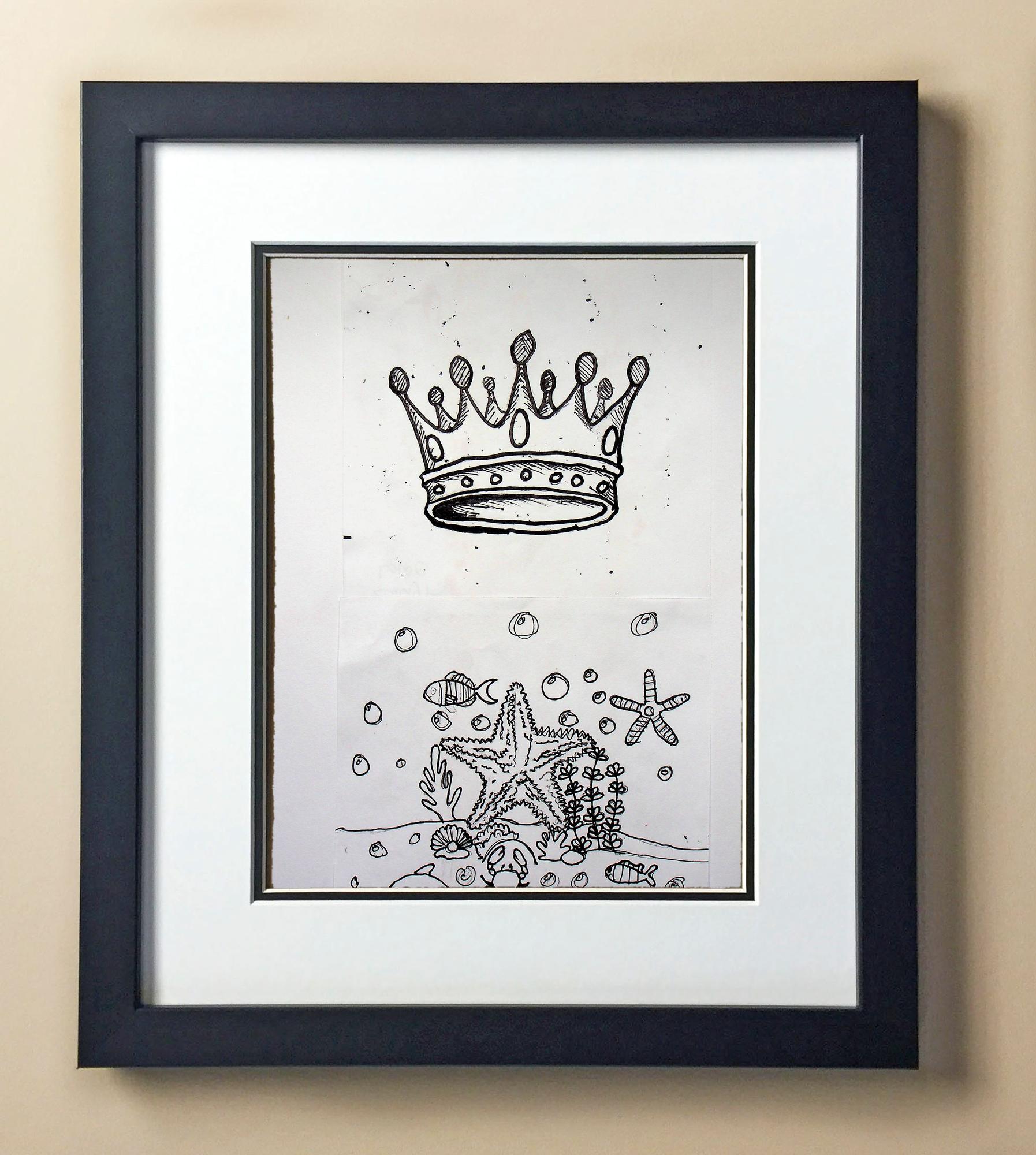Included with the purchase is the Students Artwork, Frame, double matboard, shatter proof plexiglass, and a ready to hang backerboard with turnbuttons