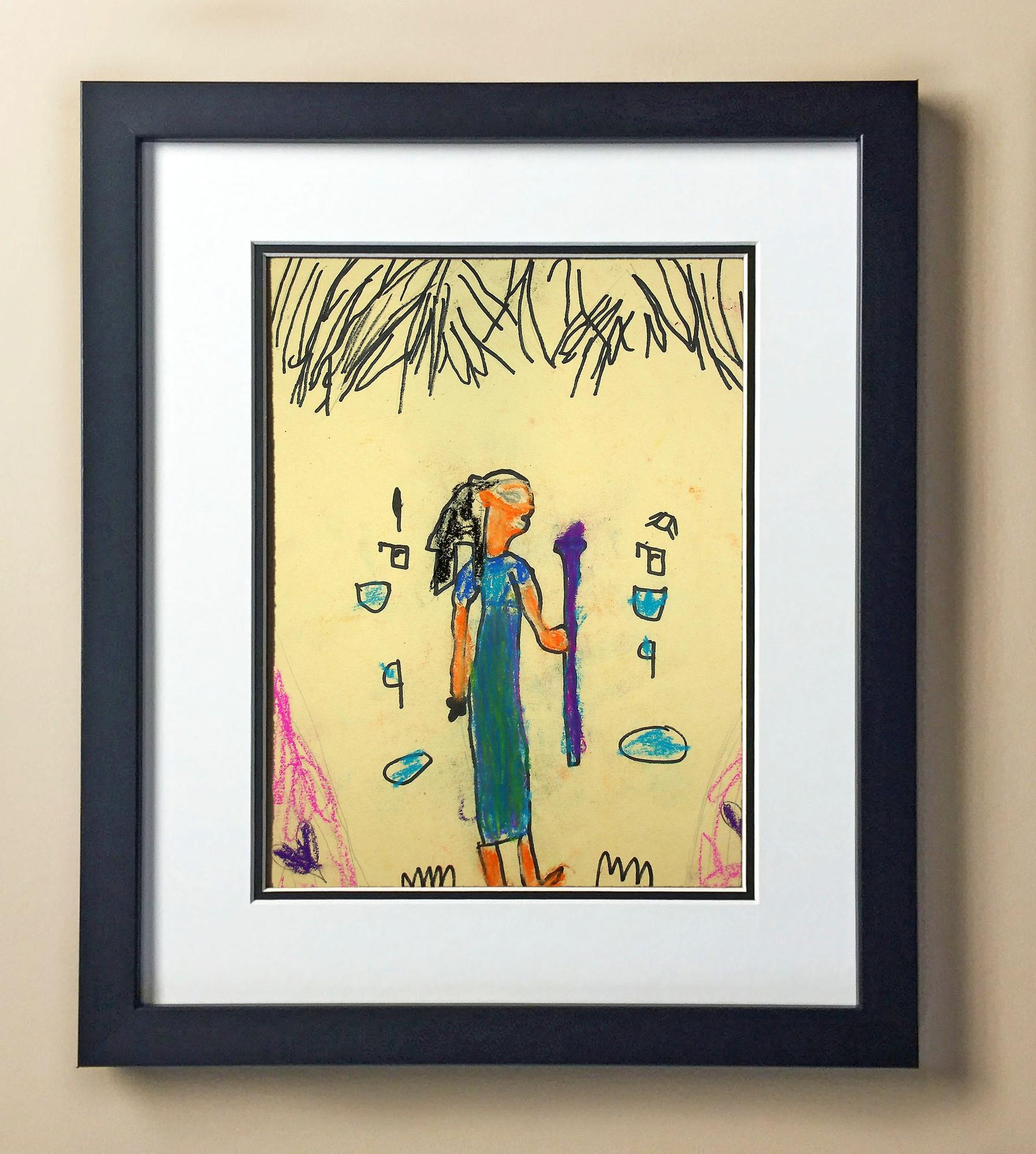 Included with the purchase is the Students Artwork, Frame, double matboard, shatter proof plexiglass, and a ready to hang backerboard with turnbuttons