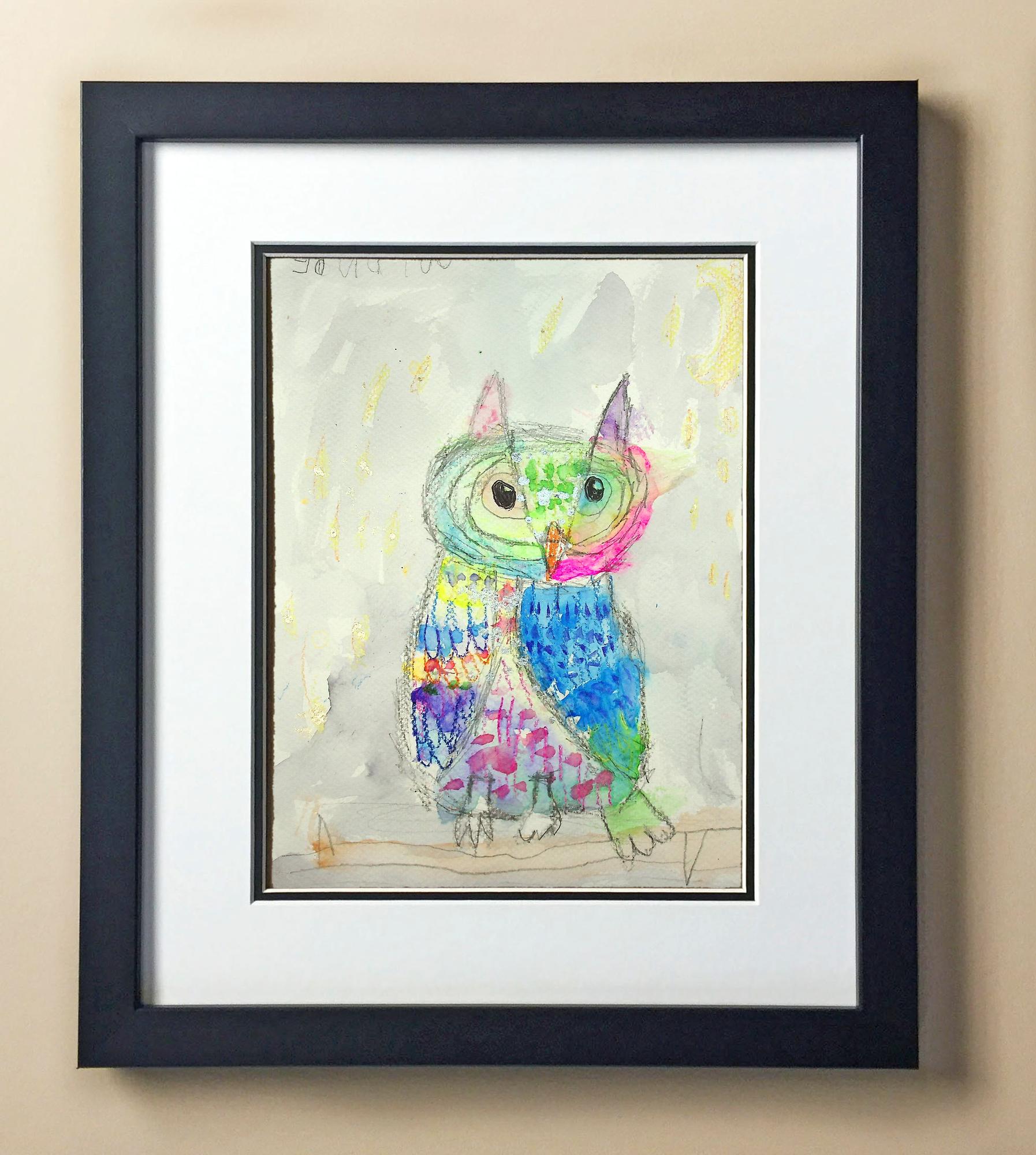 Included with the purchase is the Students Artwork, Frame, double matboard, shatter proof plexiglass, and a ready to hang backerboard with turnbuttons