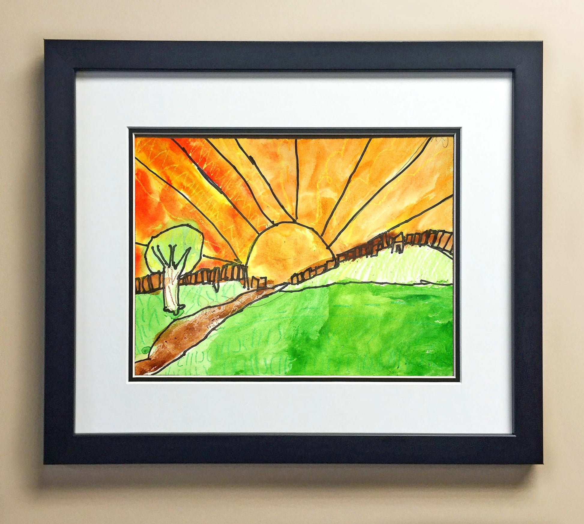 Included with the purchase is the Students Artwork, Frame, double matboard, shatter proof plexiglass, and a ready to hang backerboard with turnbuttons
