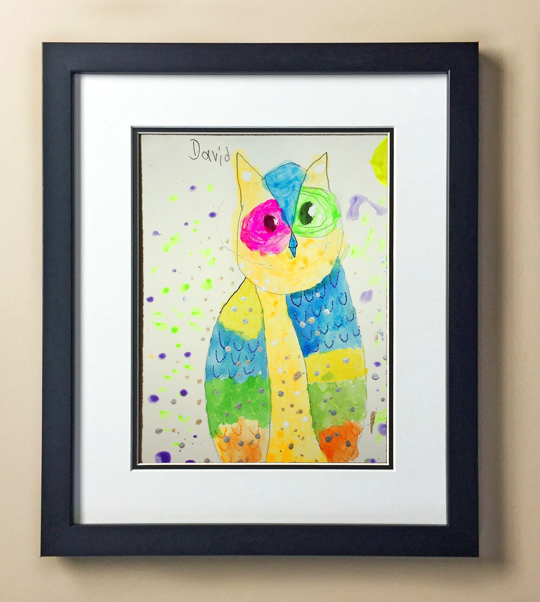 Included with the purchase is the Students Artwork, Frame, double matboard, shatter proof plexiglass, and a ready to hang backerboard with turnbuttons