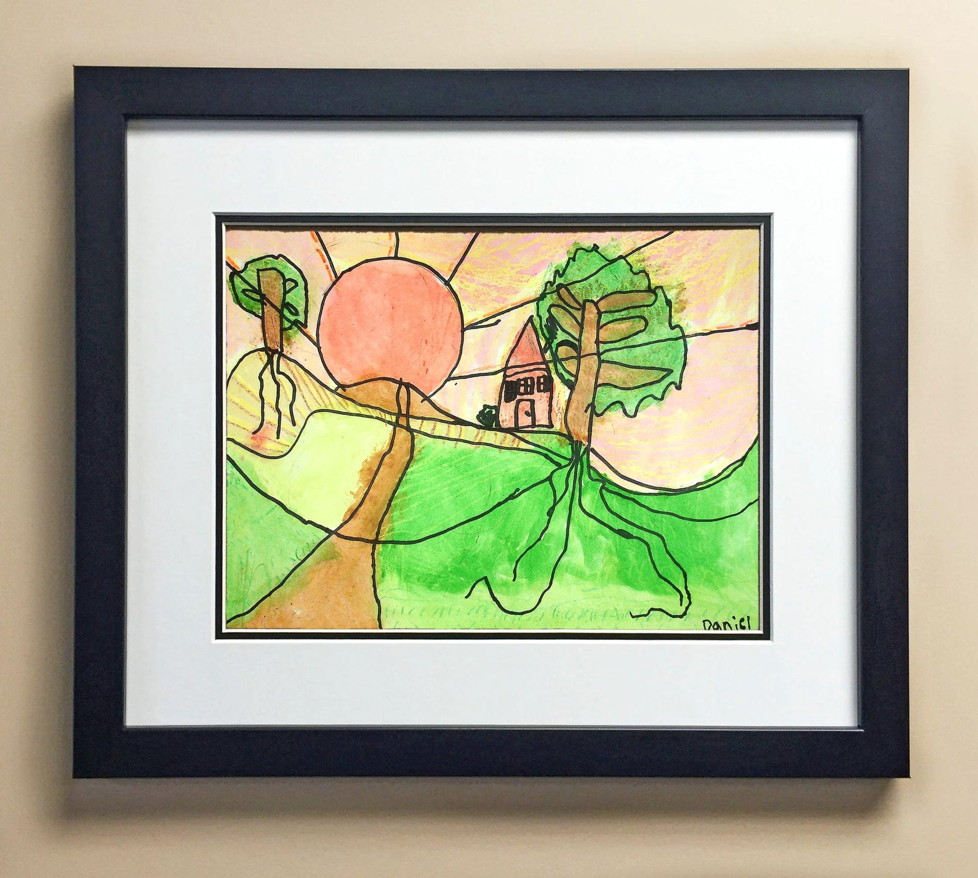Included with the purchase is the Students Artwork, Frame, double matboard, shatter proof plexiglass, and a ready to hang backerboard with turnbuttons