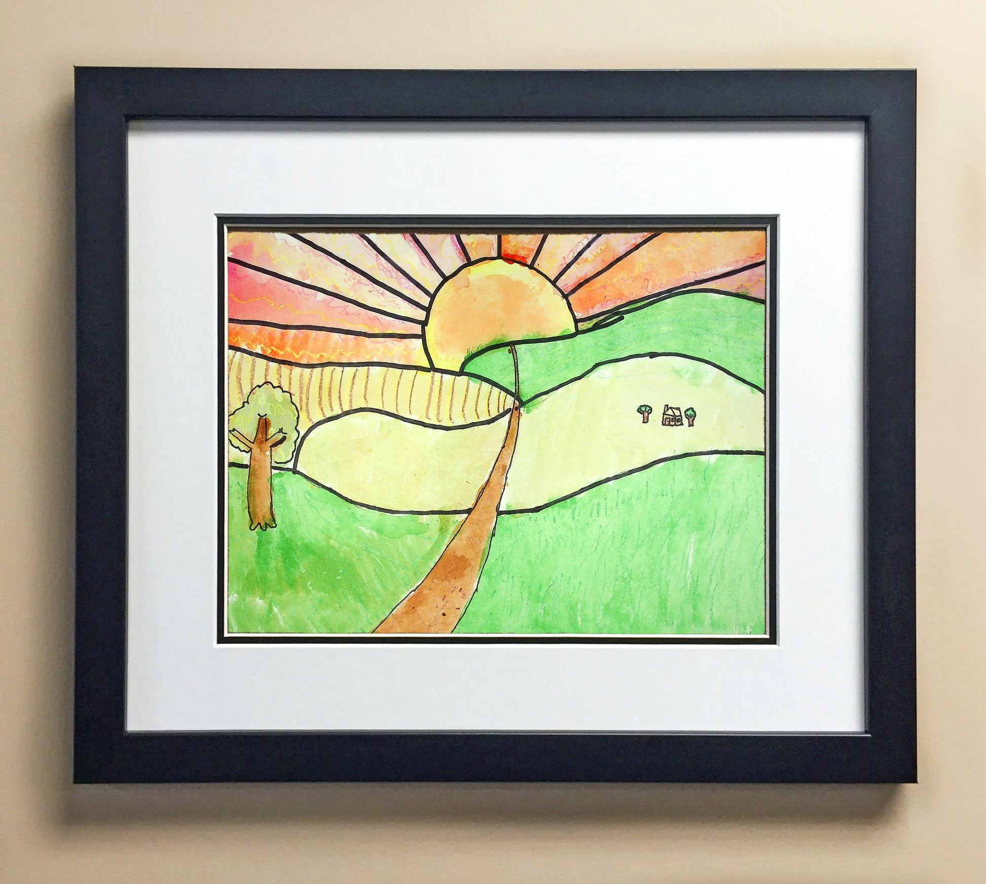 Included with the purchase is the Students Artwork, Frame, double matboard, shatter proof plexiglass, and a ready to hang backerboard with turnbuttons