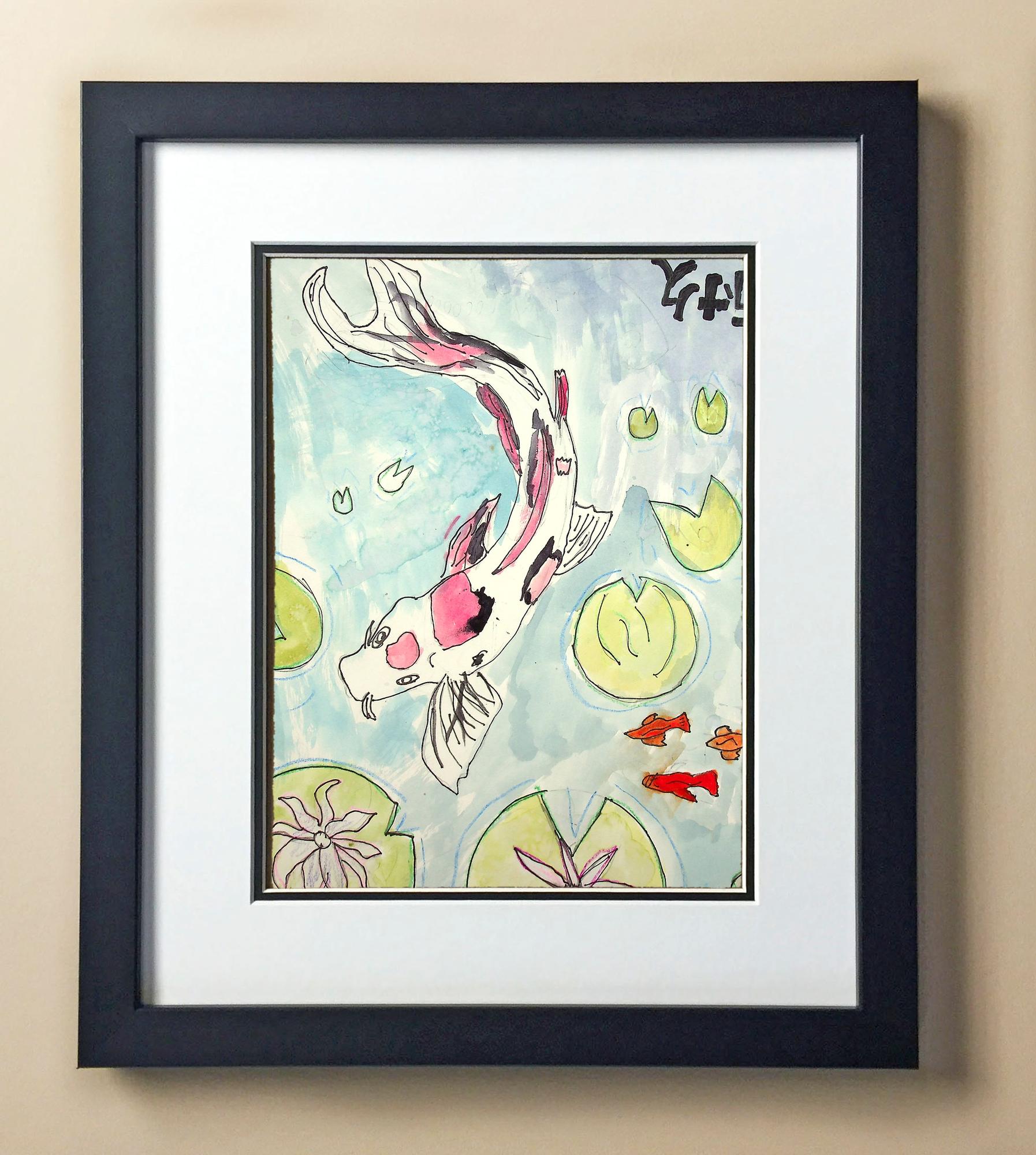 Included with the purchase is the Students Artwork, Frame, double matboard, shatter proof plexiglass, and a ready to hang backerboard with turnbuttons
