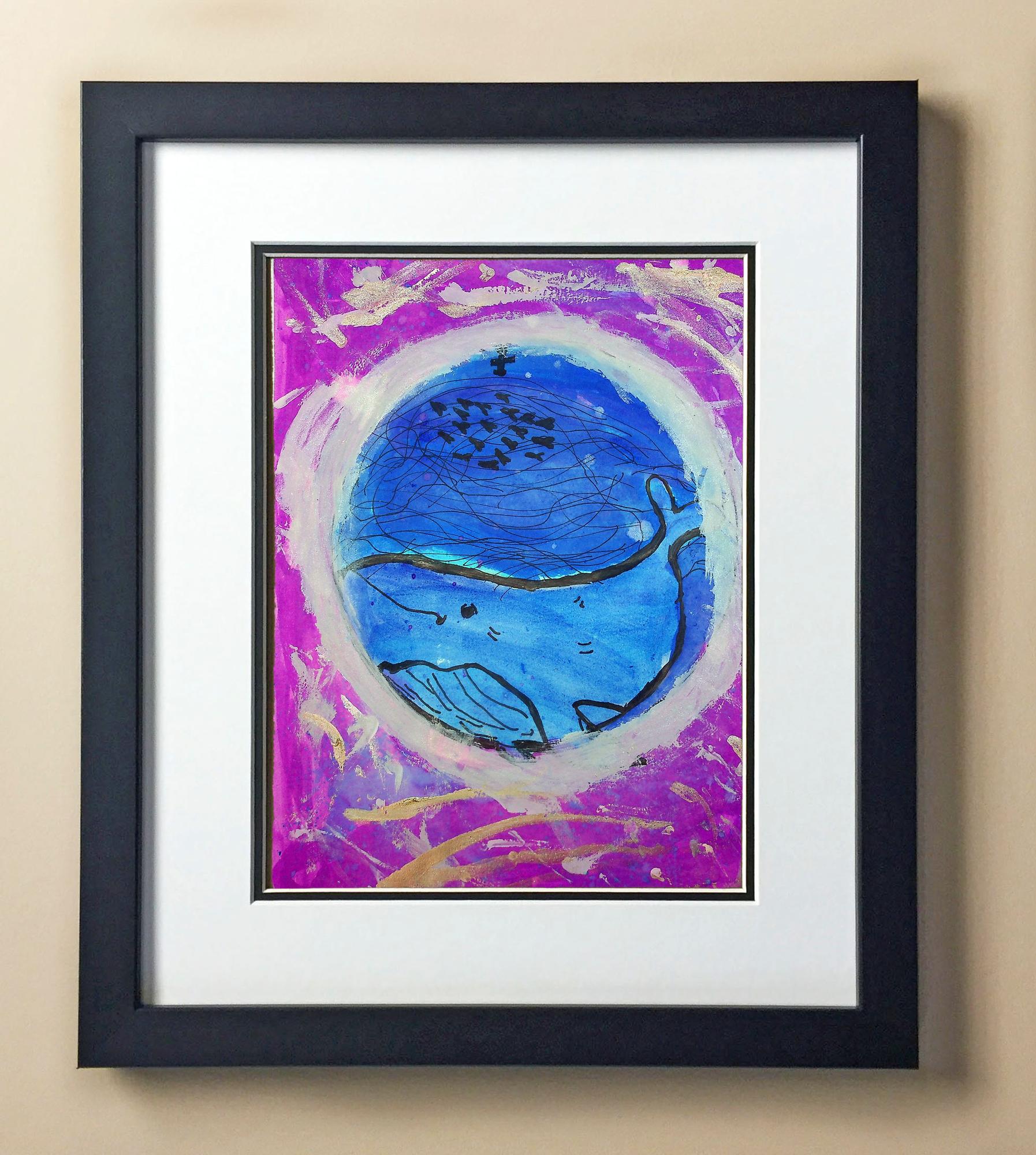 Included with the purchase is the Students Artwork, Frame, double matboard, shatter proof plexiglass, and a ready to hang backerboard with turnbuttons