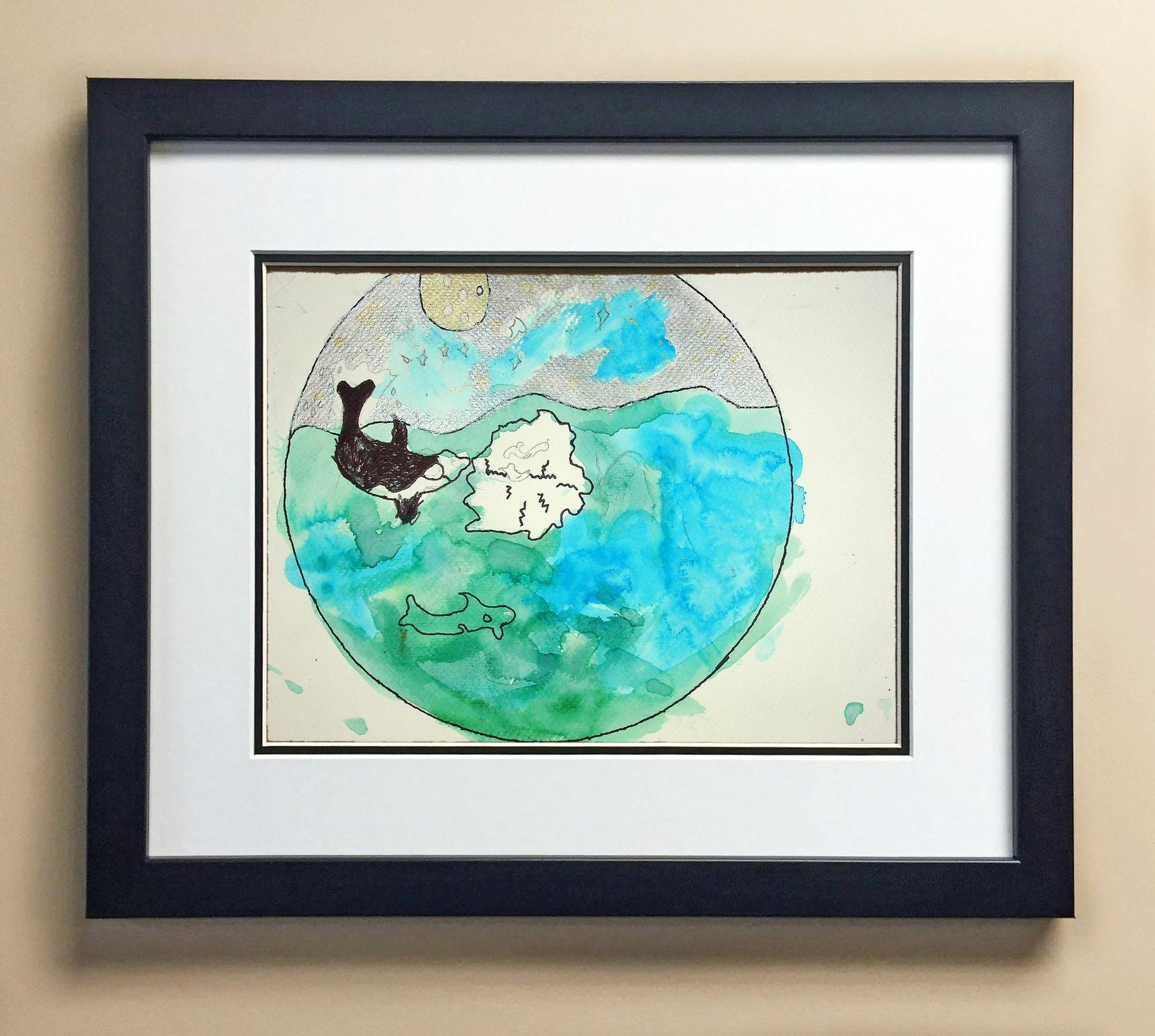 Included with the purchase is the Students Artwork, Frame, double matboard, shatter proof plexiglass, and a ready to hang backerboard with turnbuttons