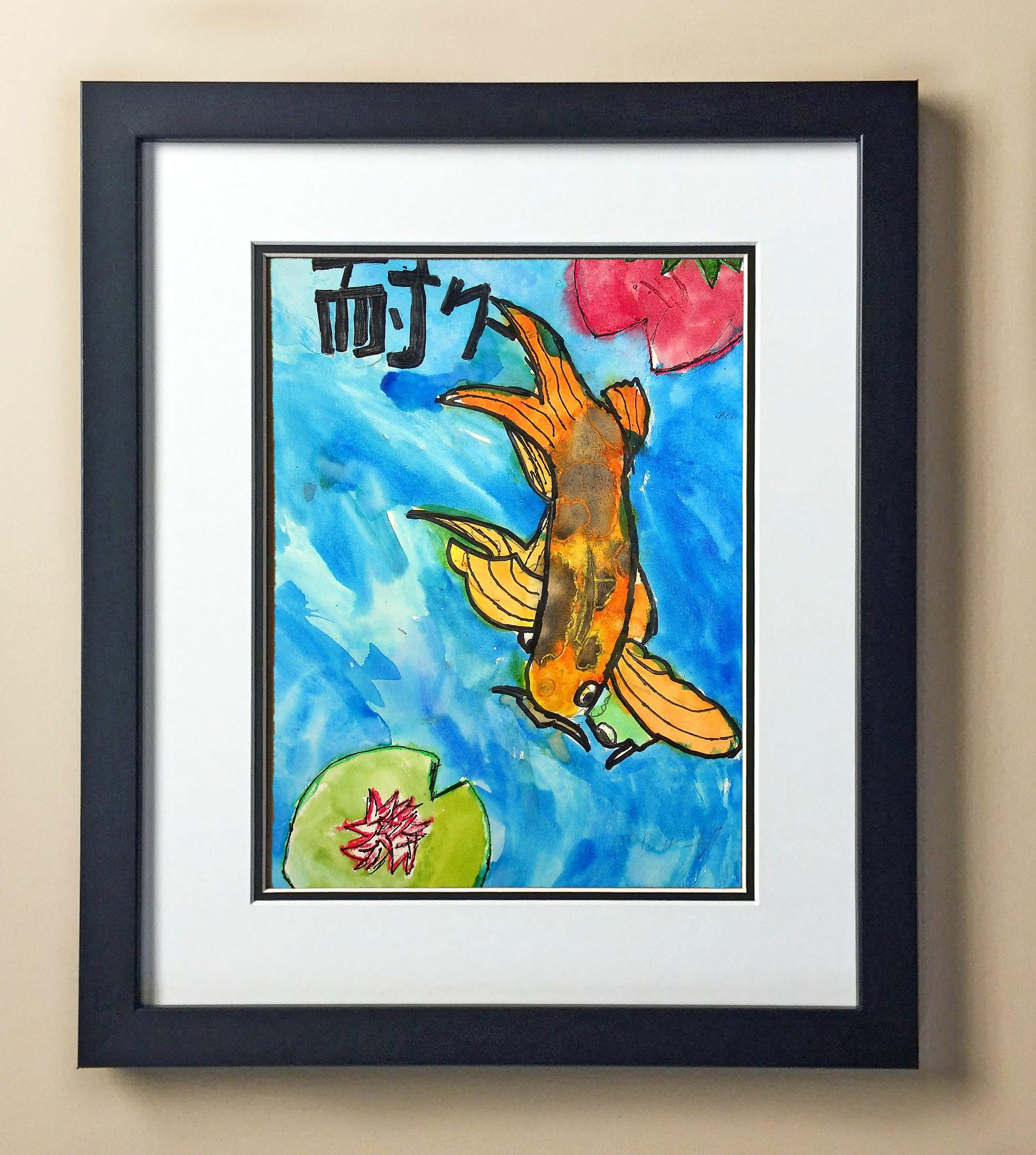 Included with the purchase is the Students Artwork, Frame, double matboard, shatter proof plexiglass, and a ready to hang backerboard with turnbuttons