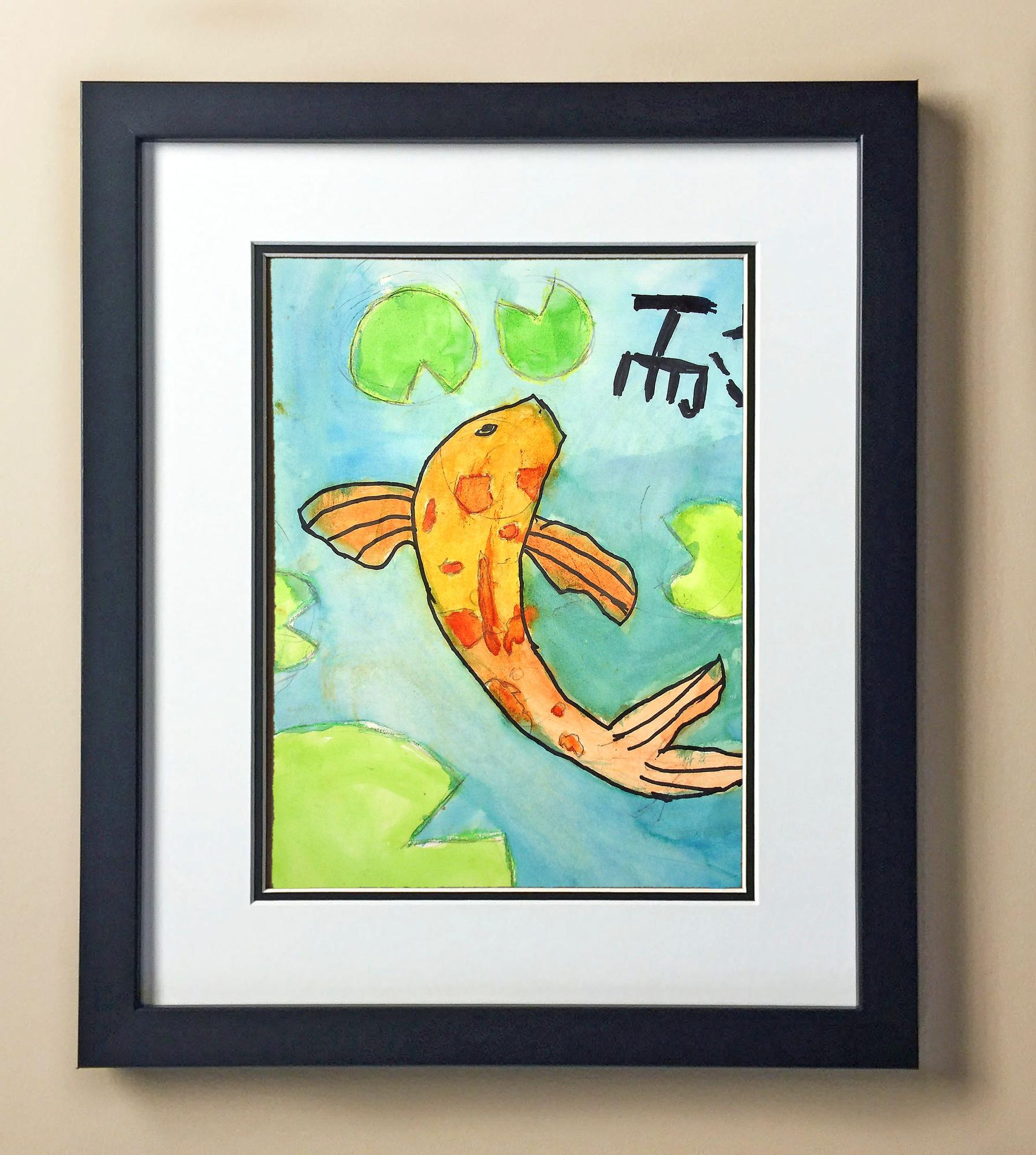 Included with the purchase is the Students Artwork, Frame, double matboard, shatter proof plexiglass, and a ready to hang backerboard with turnbuttons