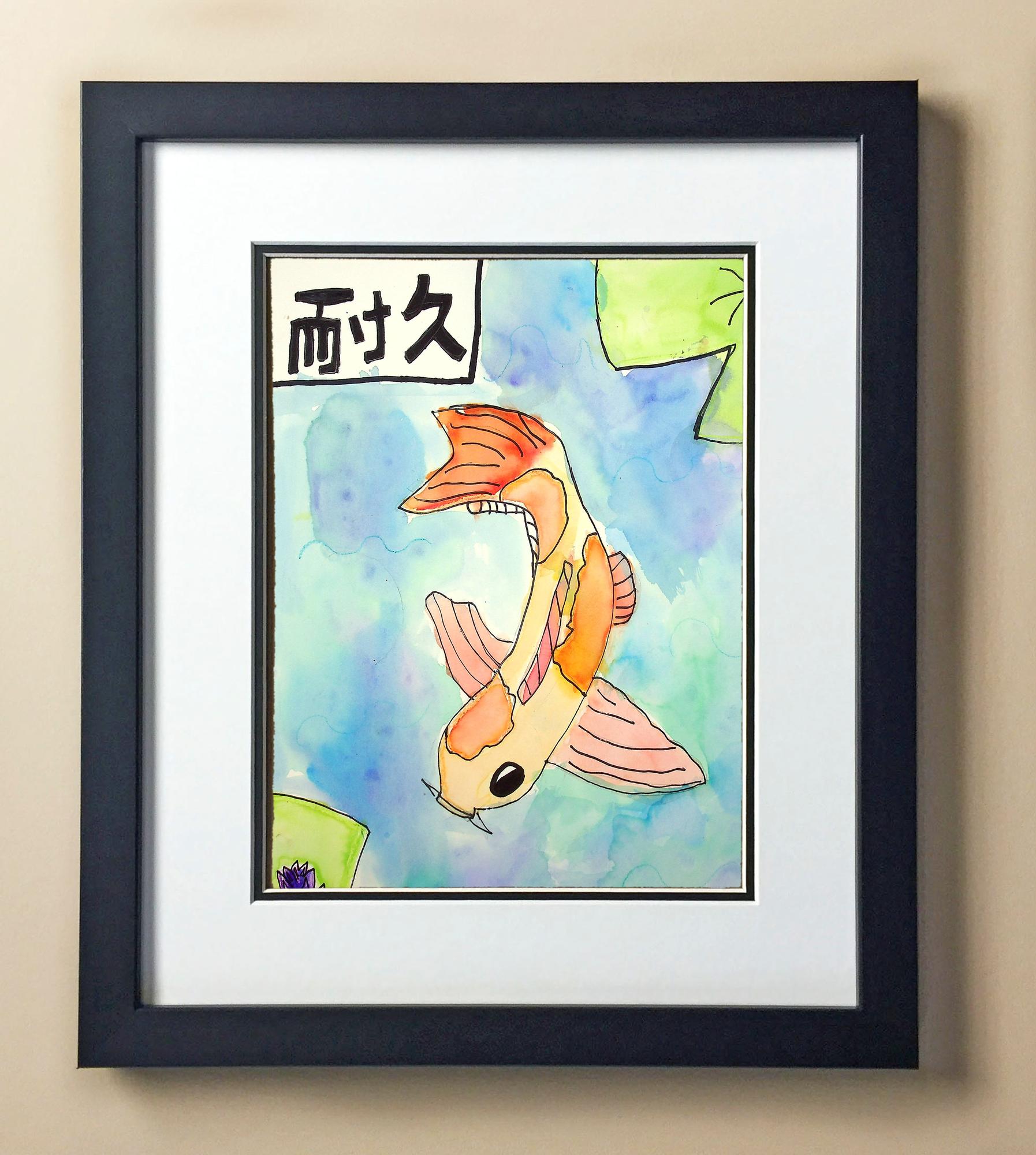 Included with the purchase is the Students Artwork, Frame, double matboard, shatter proof plexiglass, and a ready to hang backerboard with turnbuttons
