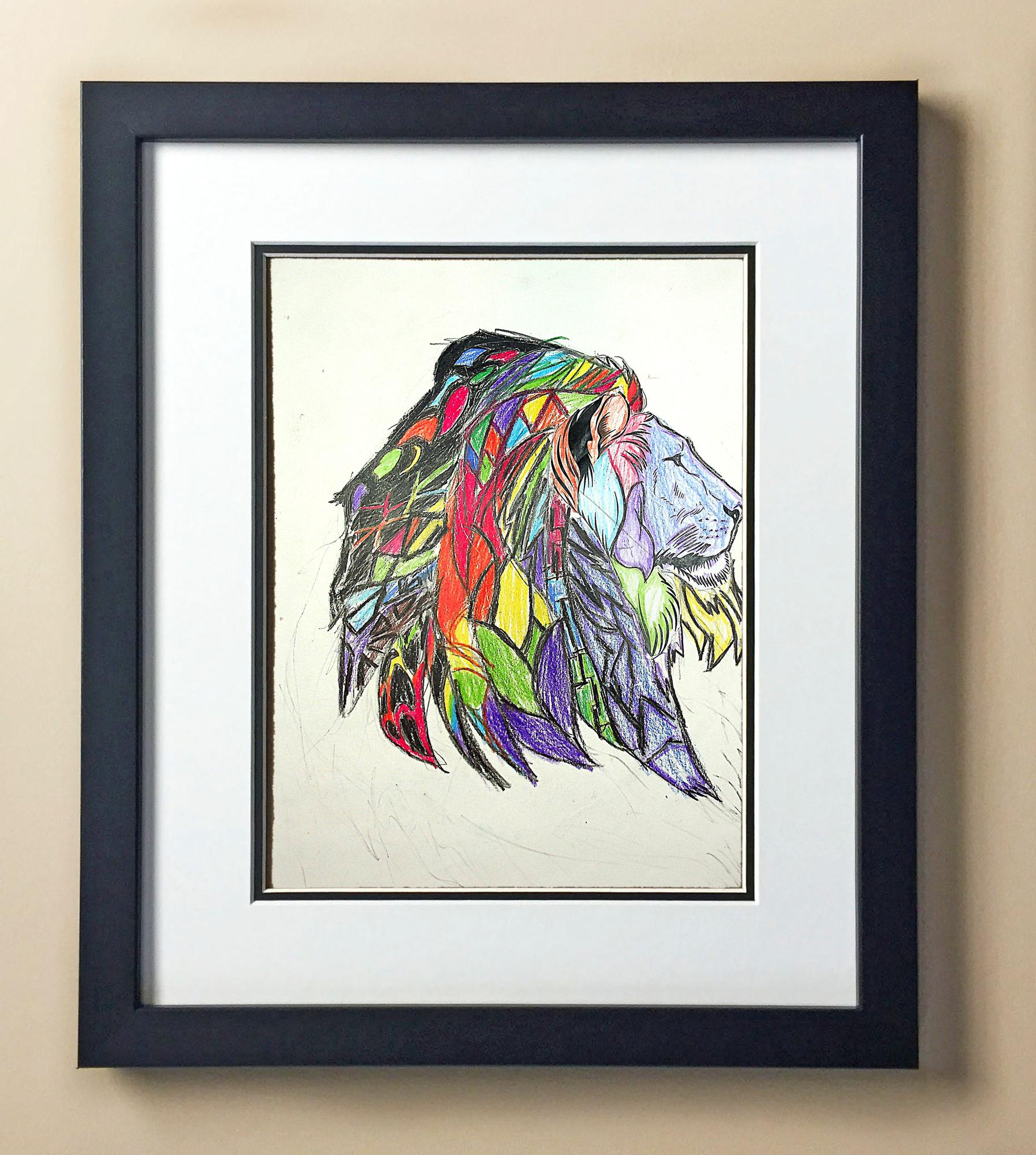 Included with the purchase is the Students Artwork, Frame, double matboard, shatter proof plexiglass, and a ready to hang backerboard with turnbuttons