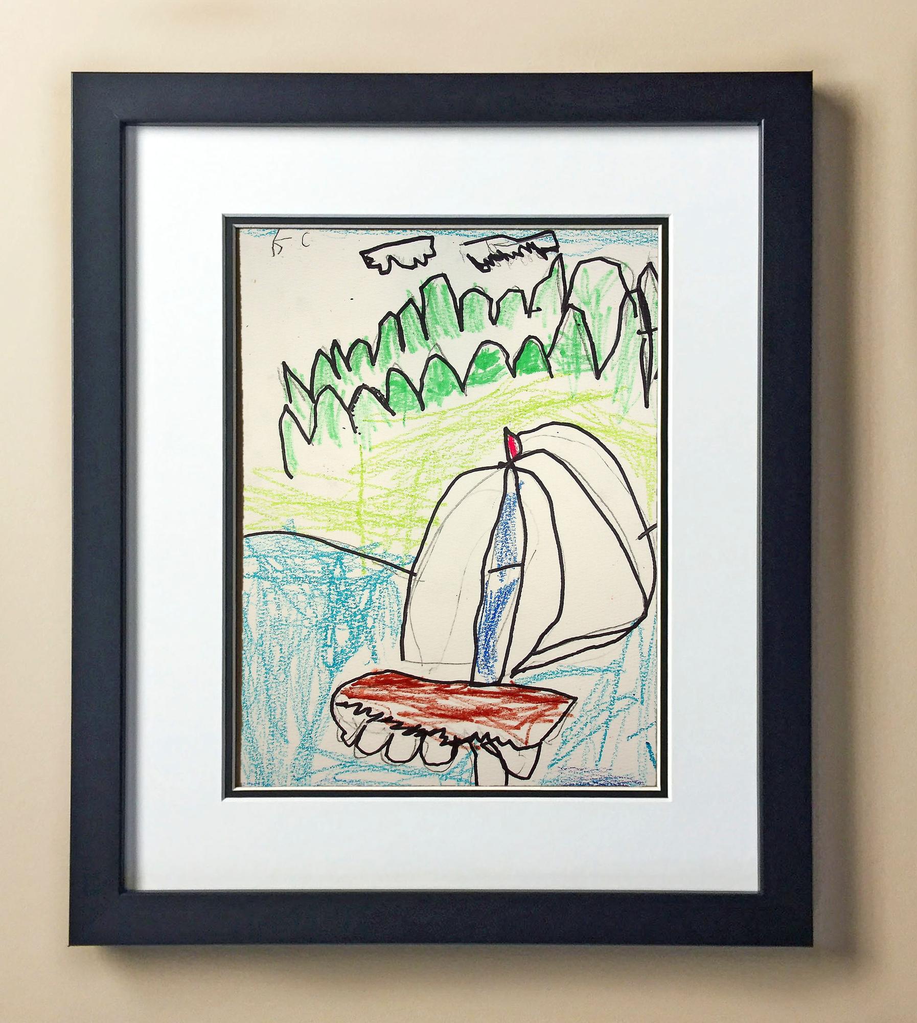 Included with the purchase is the Students Artwork, Frame, double matboard, shatter proof plexiglass, and a ready to hang backerboard with turnbuttons