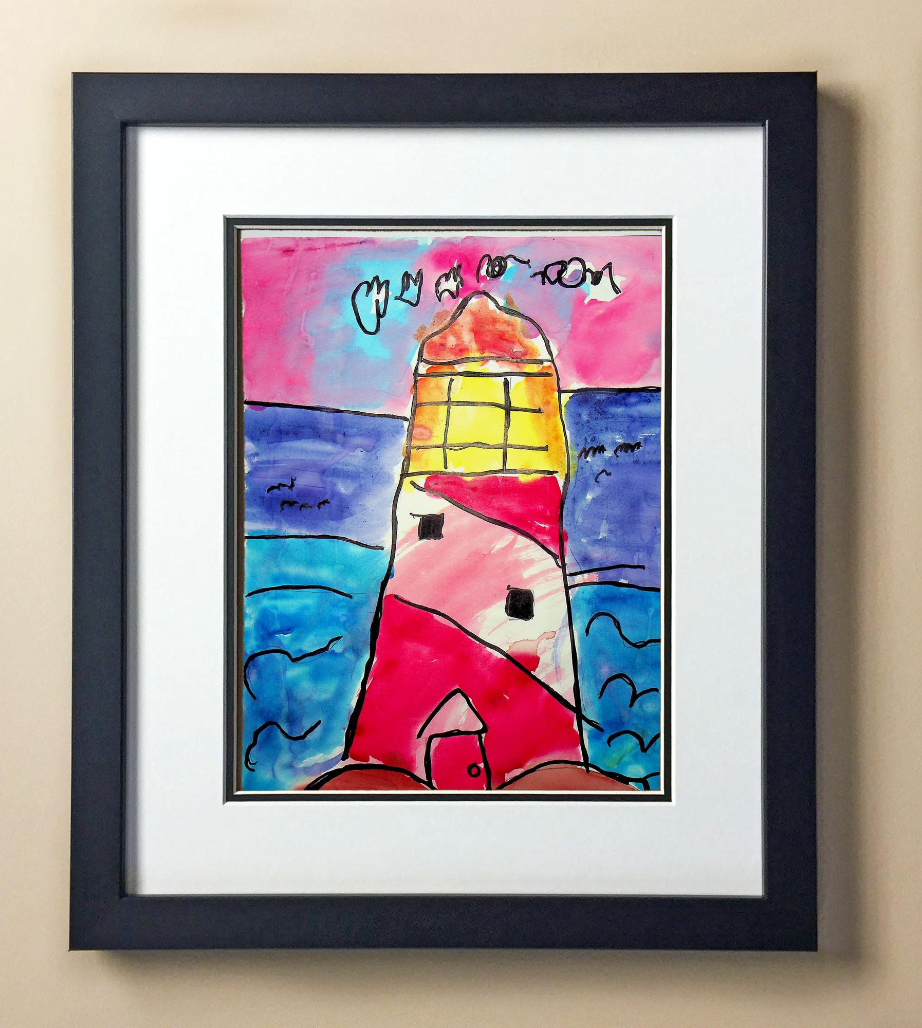 Included with the purchase is the Students Artwork, Frame, double matboard, shatter proof plexiglass, and a ready to hang backerboard with turnbuttons