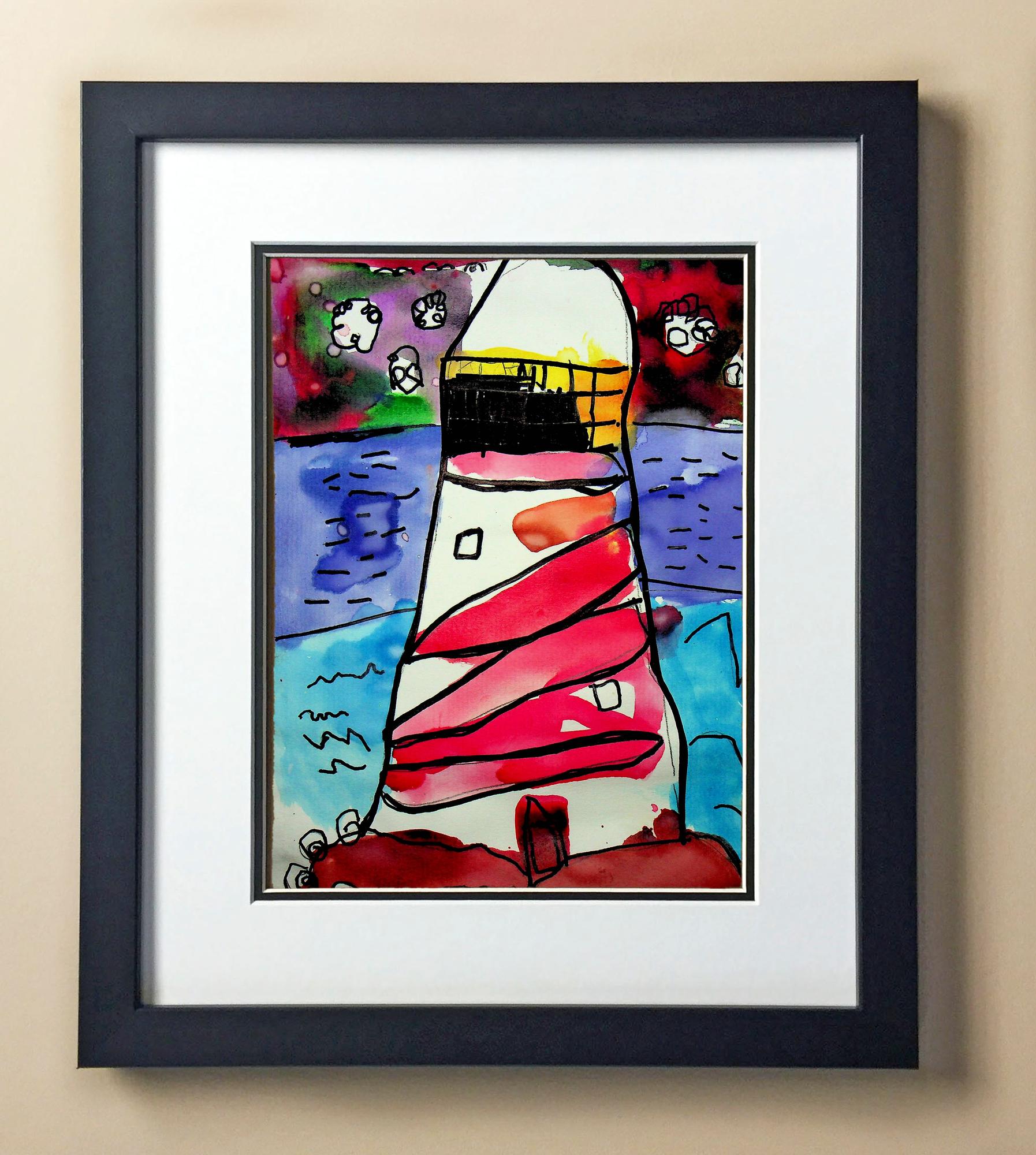 Included with the purchase is the Students Artwork, Frame, double matboard, shatter proof plexiglass, and a ready to hang backerboard with turnbuttons
