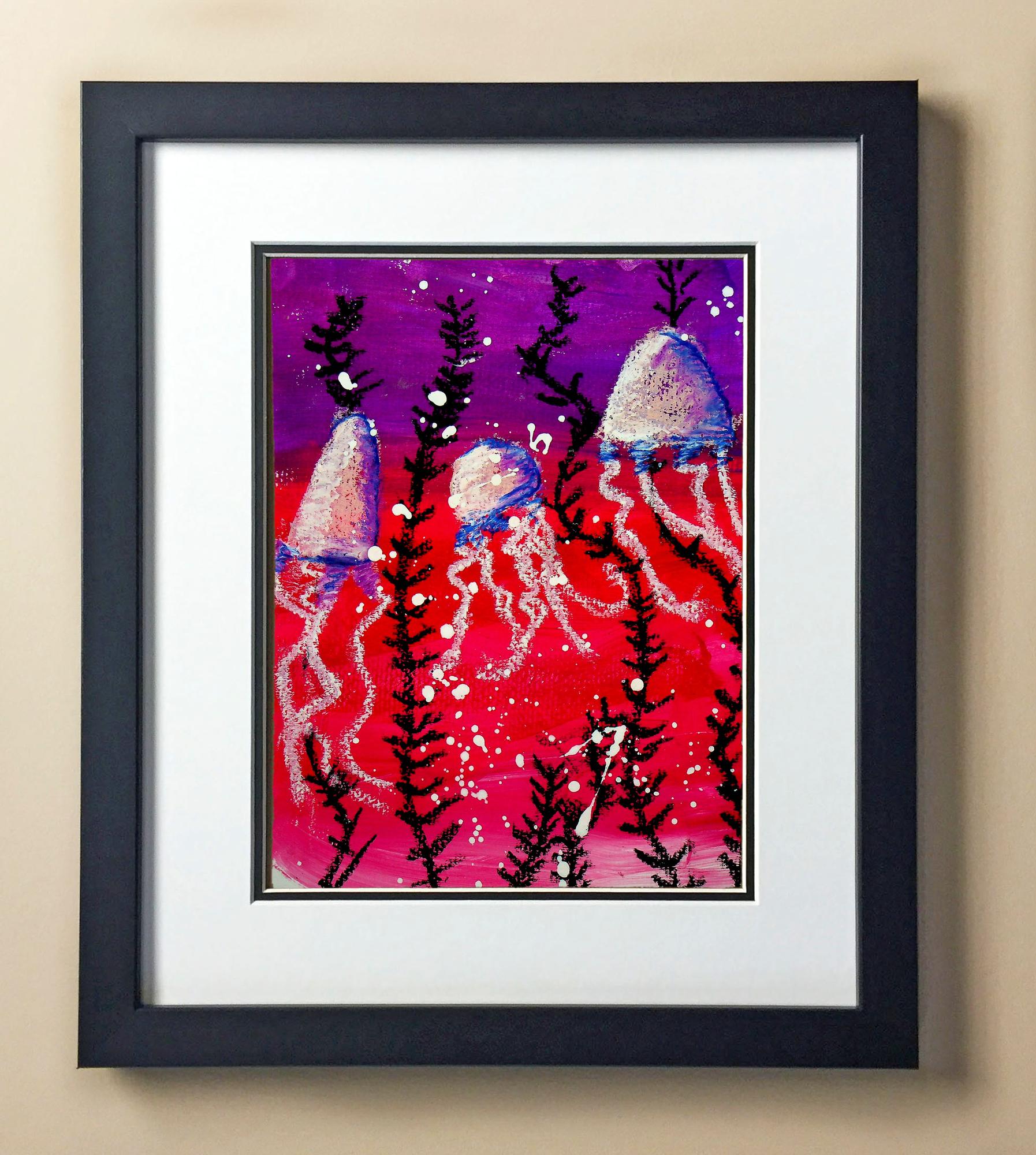 Included with the purchase is the Students Artwork, Frame, double matboard, shatter proof plexiglass, and a ready to hang backerboard with turnbuttons