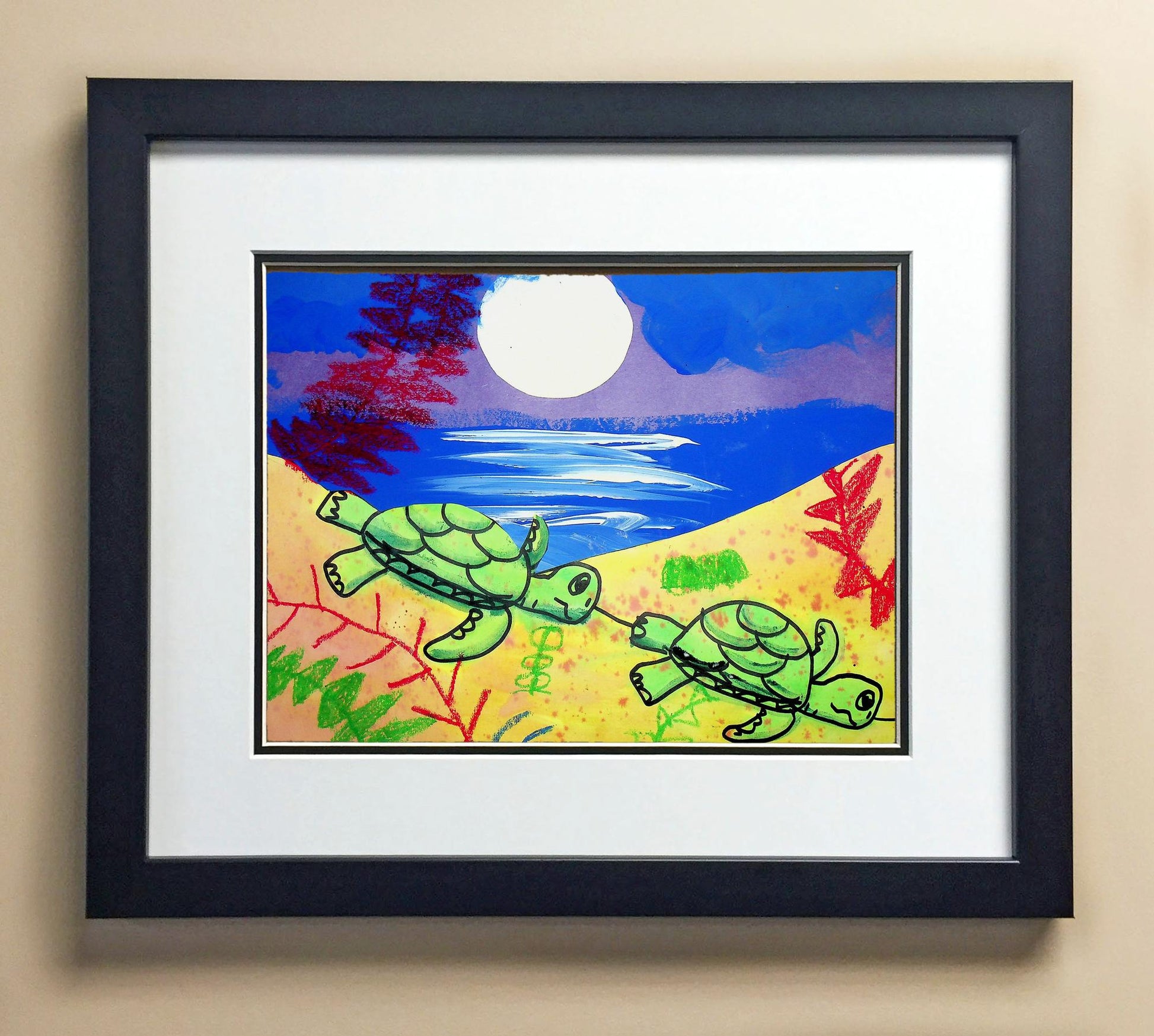 Included with the purchase is the Students Artwork, Frame, double matboard, shatter proof plexiglass, and a ready to hang backerboard with turnbuttons
