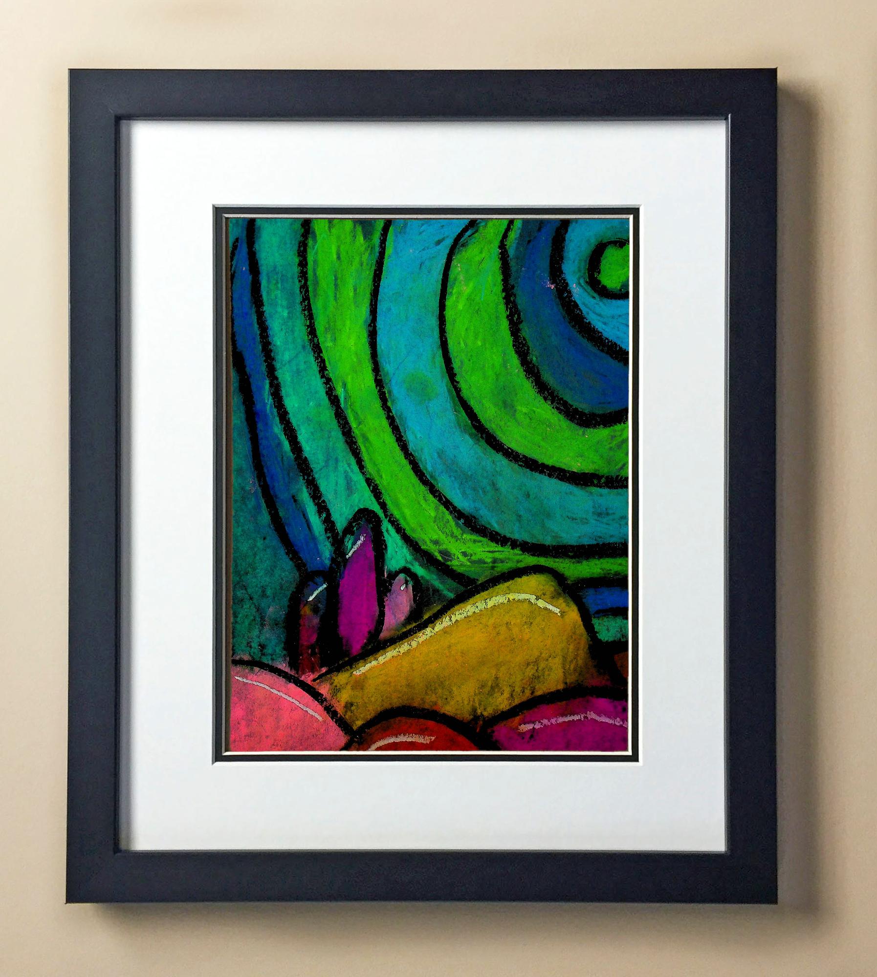 Included with the purchase is the Students Artwork, Frame, double matboard, shatter proof plexiglass, and a ready to hang backerboard with turnbuttons