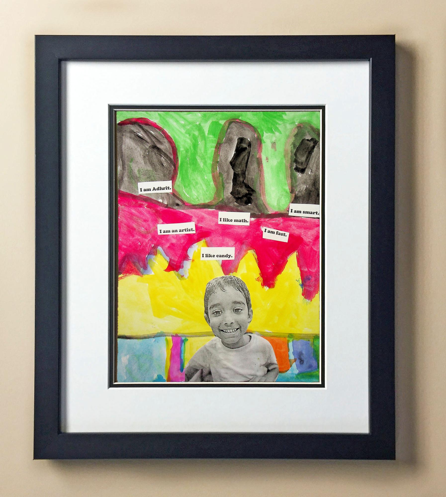 Included with the purchase is the Students Artwork, Frame, double matboard, shatter proof plexiglass, and a ready to hang backerboard with turnbuttons