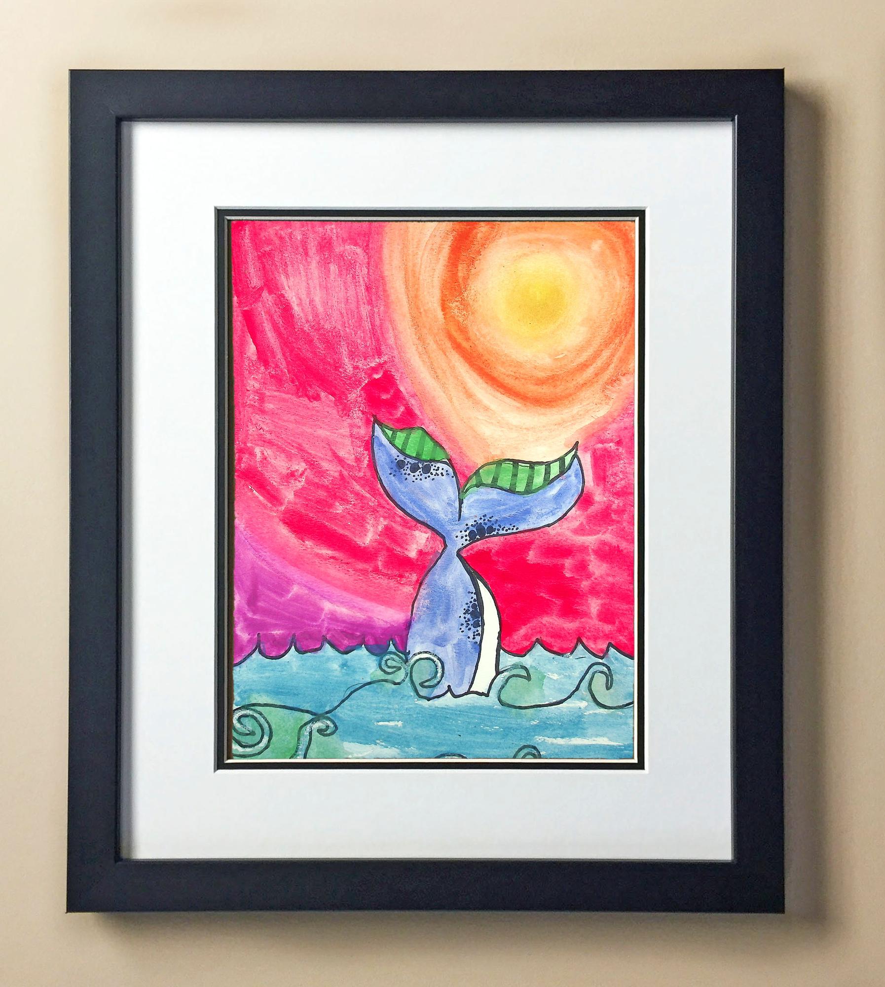 Included with the purchase is the Students Artwork, Frame, double matboard, shatter proof plexiglass, and a ready to hang backerboard with turnbuttons