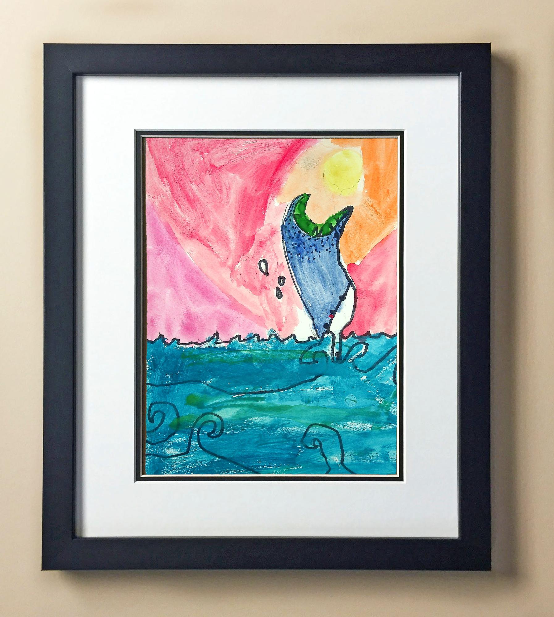 Included with the purchase is the Students Artwork, Frame, double matboard, shatter proof plexiglass, and a ready to hang backerboard with turnbuttons