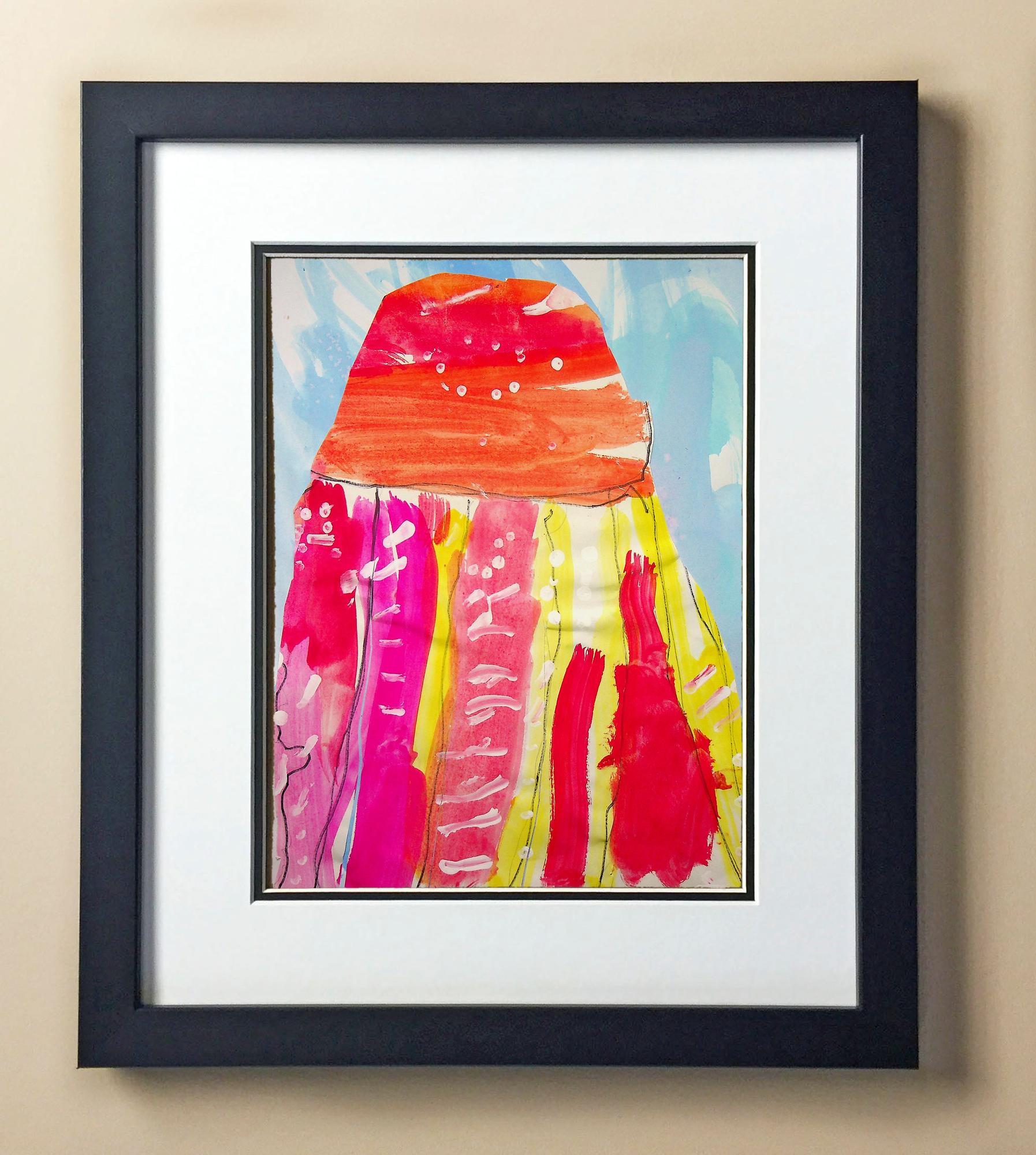 Included with the purchase is the Students Artwork, Frame, double matboard, shatter proof plexiglass, and a ready to hang backerboard with turnbuttons