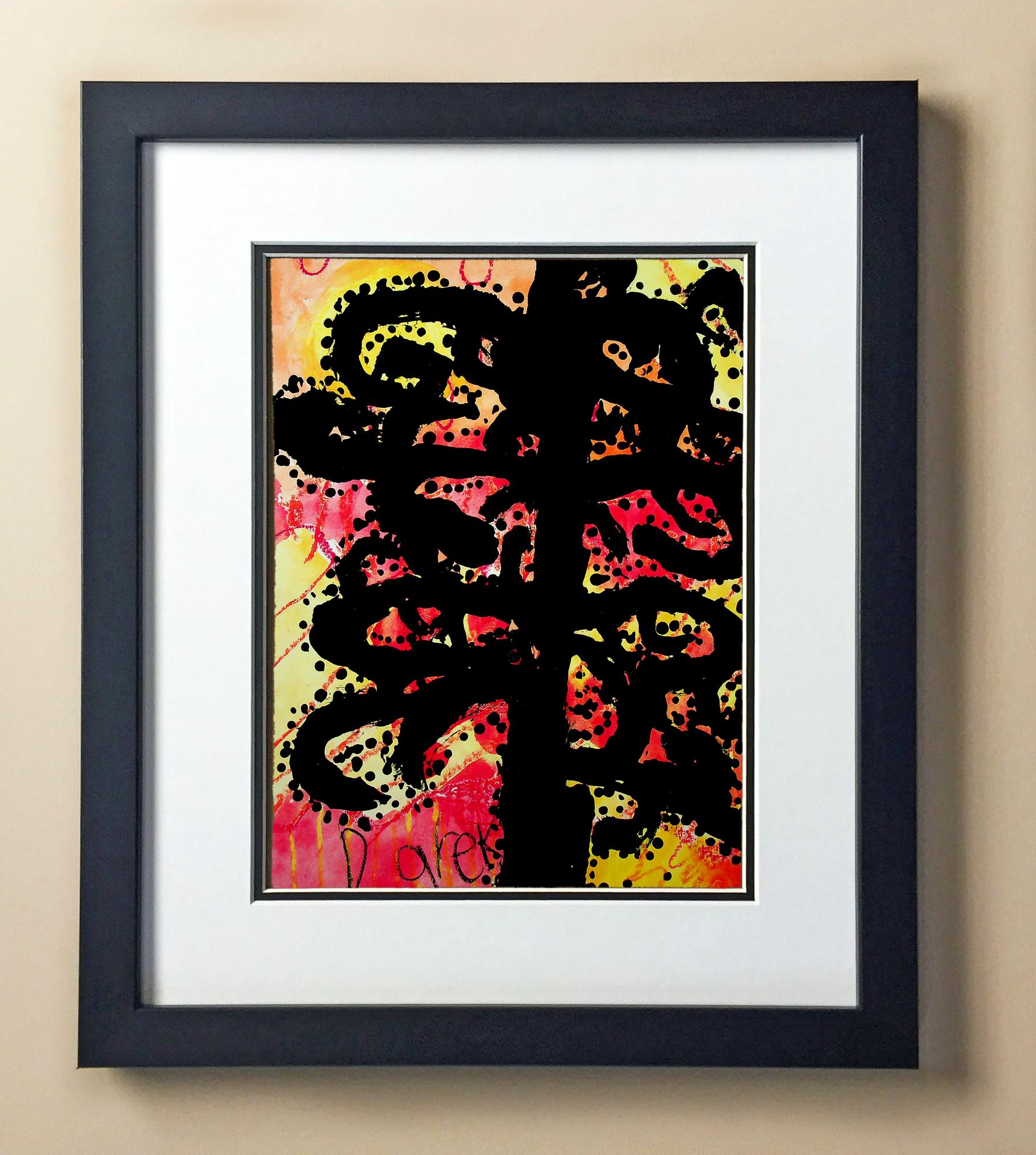 Included with the purchase is the Students Artwork, Frame, double matboard, shatter proof plexiglass, and a ready to hang backerboard with turnbuttons