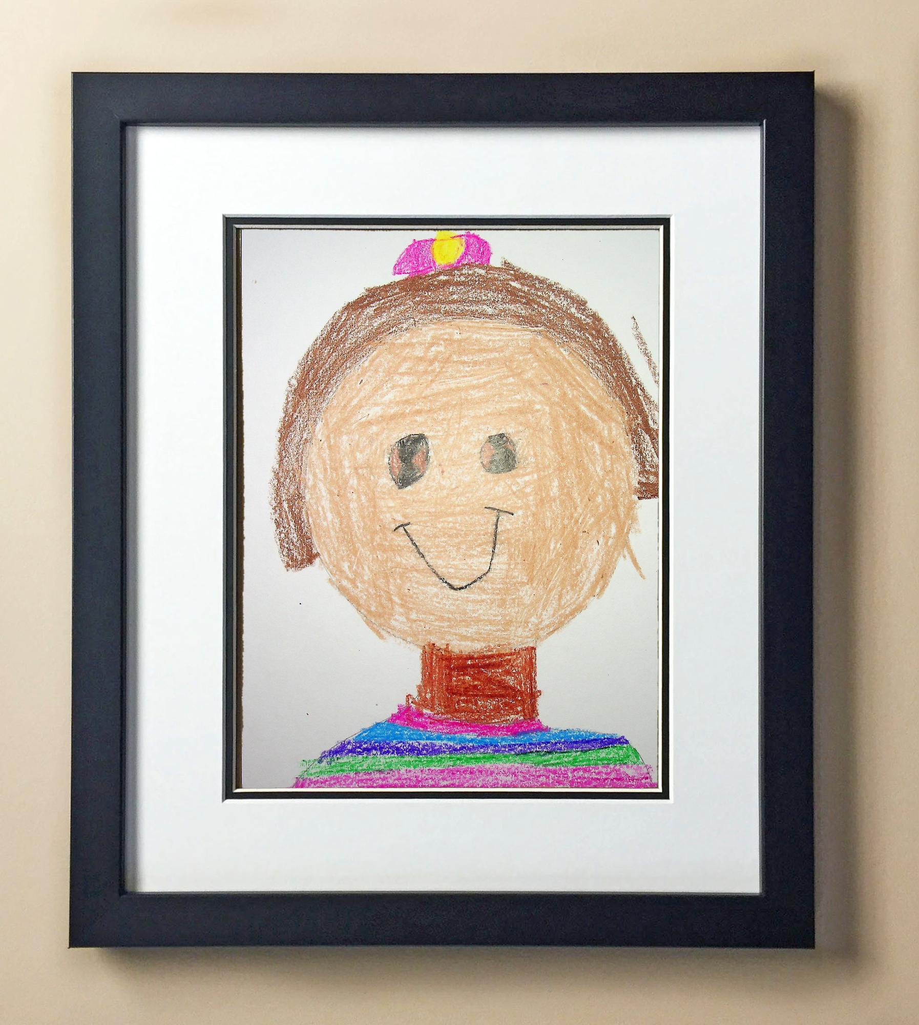 Included with the purchase is the Students Artwork, Frame, double matboard, shatter proof plexiglass, and a ready to hang backerboard with turnbuttons