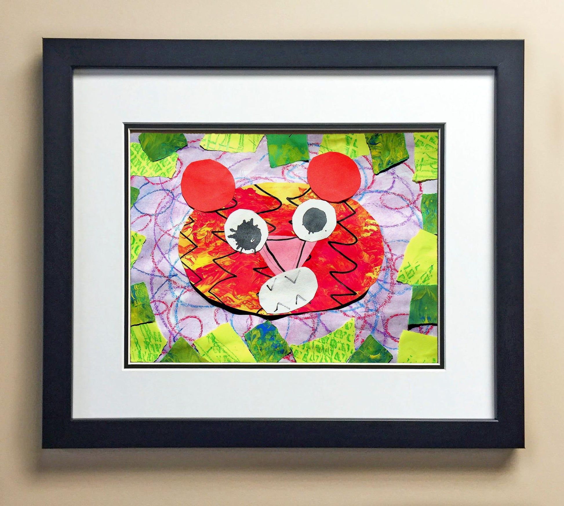 Included with the purchase is the Students Artwork, Frame, double matboard, shatter proof plexiglass, and a ready to hang backerboard with turnbuttons