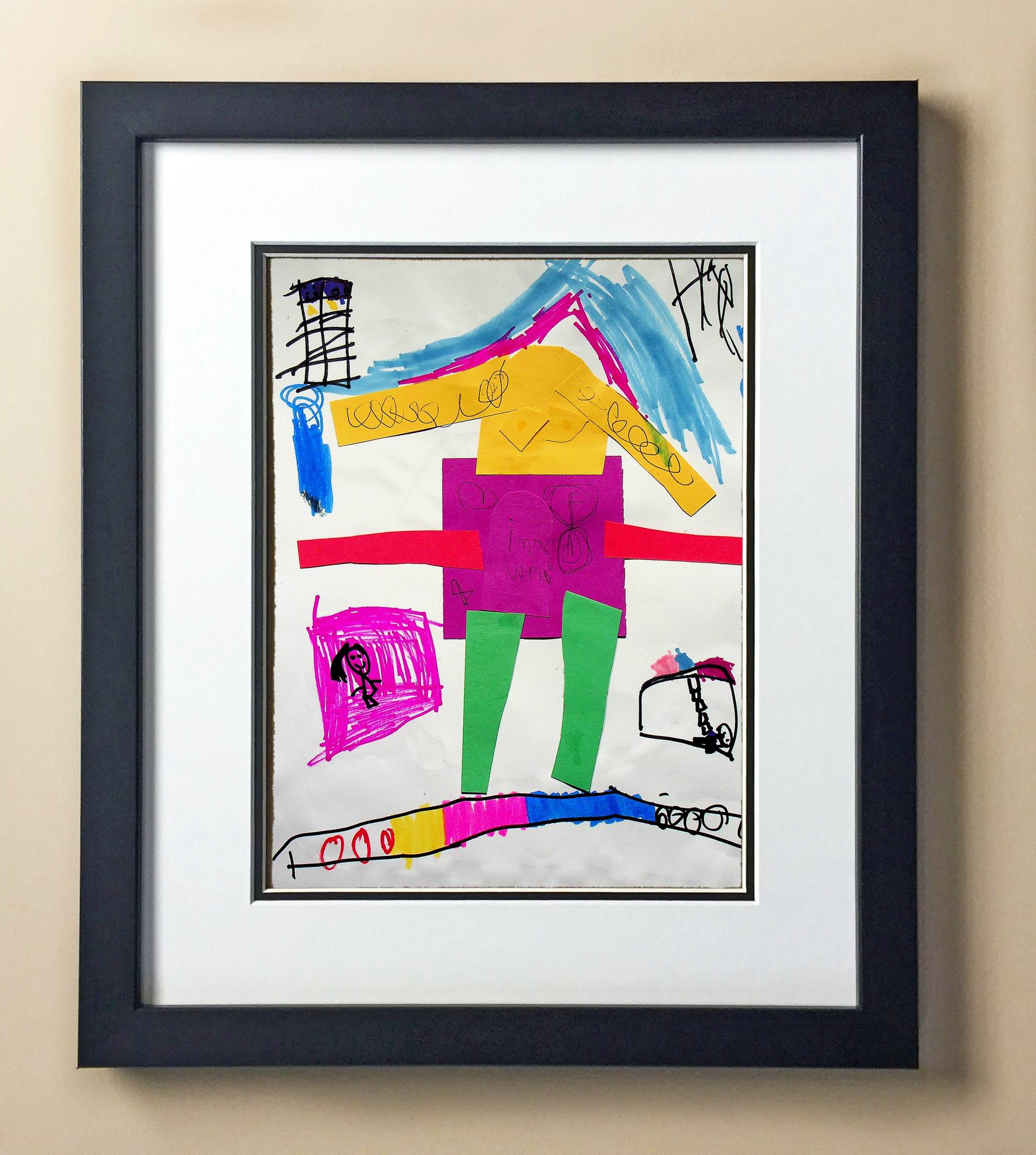 Included with the purchase is the Students Artwork, Frame, double matboard, shatter proof plexiglass, and a ready to hang backerboard with turnbuttons