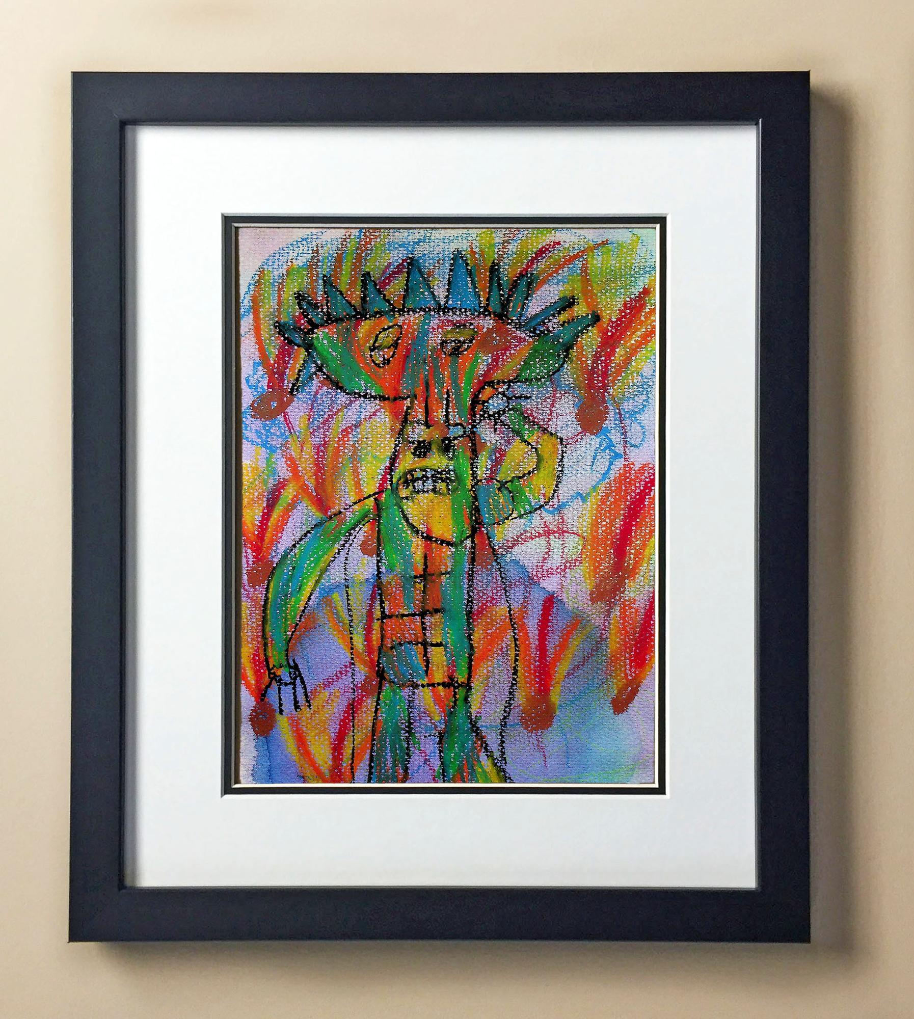 Included with the purchase is the Students Artwork, Frame, double matboard, shatter proof plexiglass, and a ready to hang backerboard with turnbuttons
