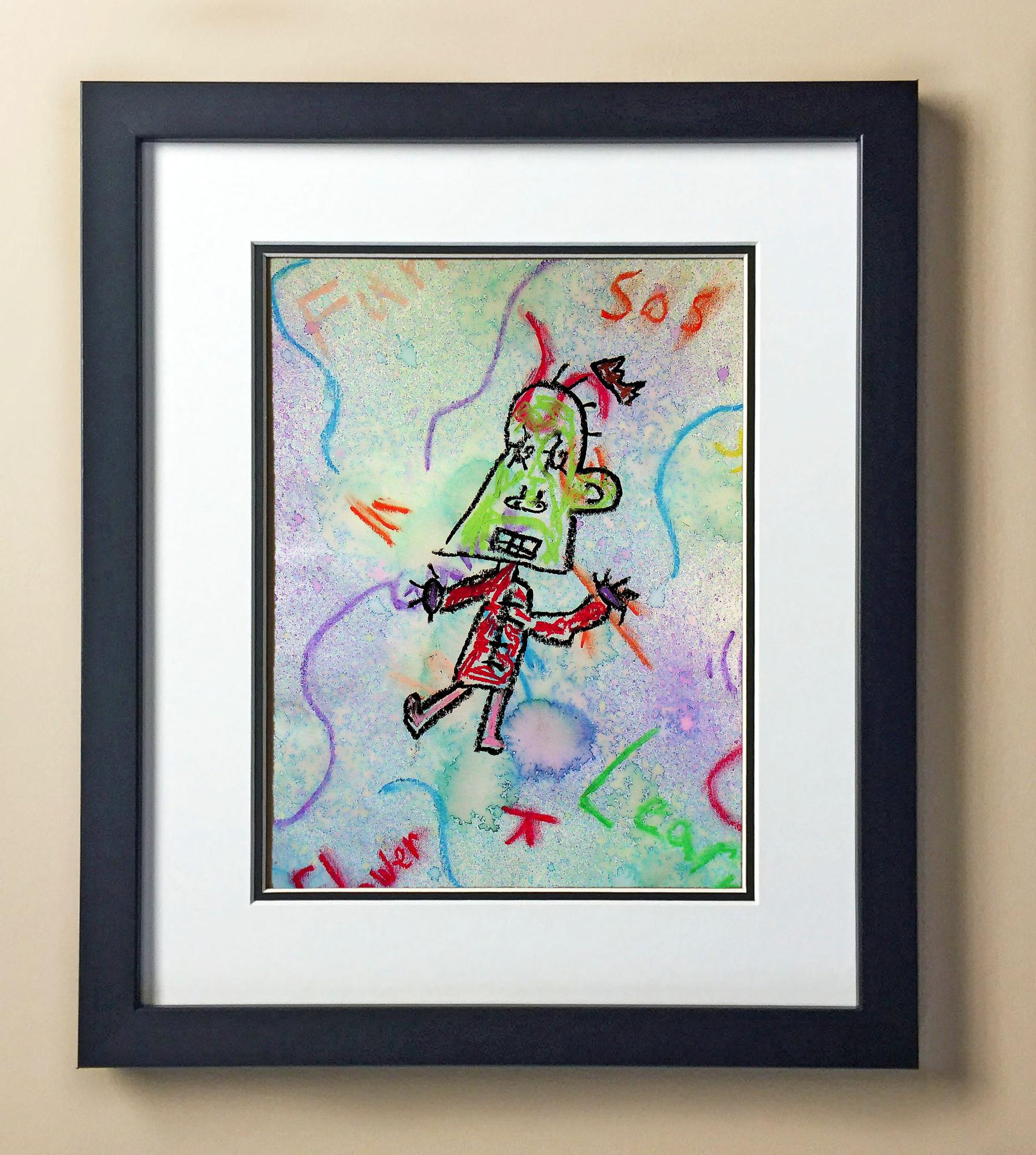 Included with the purchase is the Students Artwork, Frame, double matboard, shatter proof plexiglass, and a ready to hang backerboard with turnbuttons