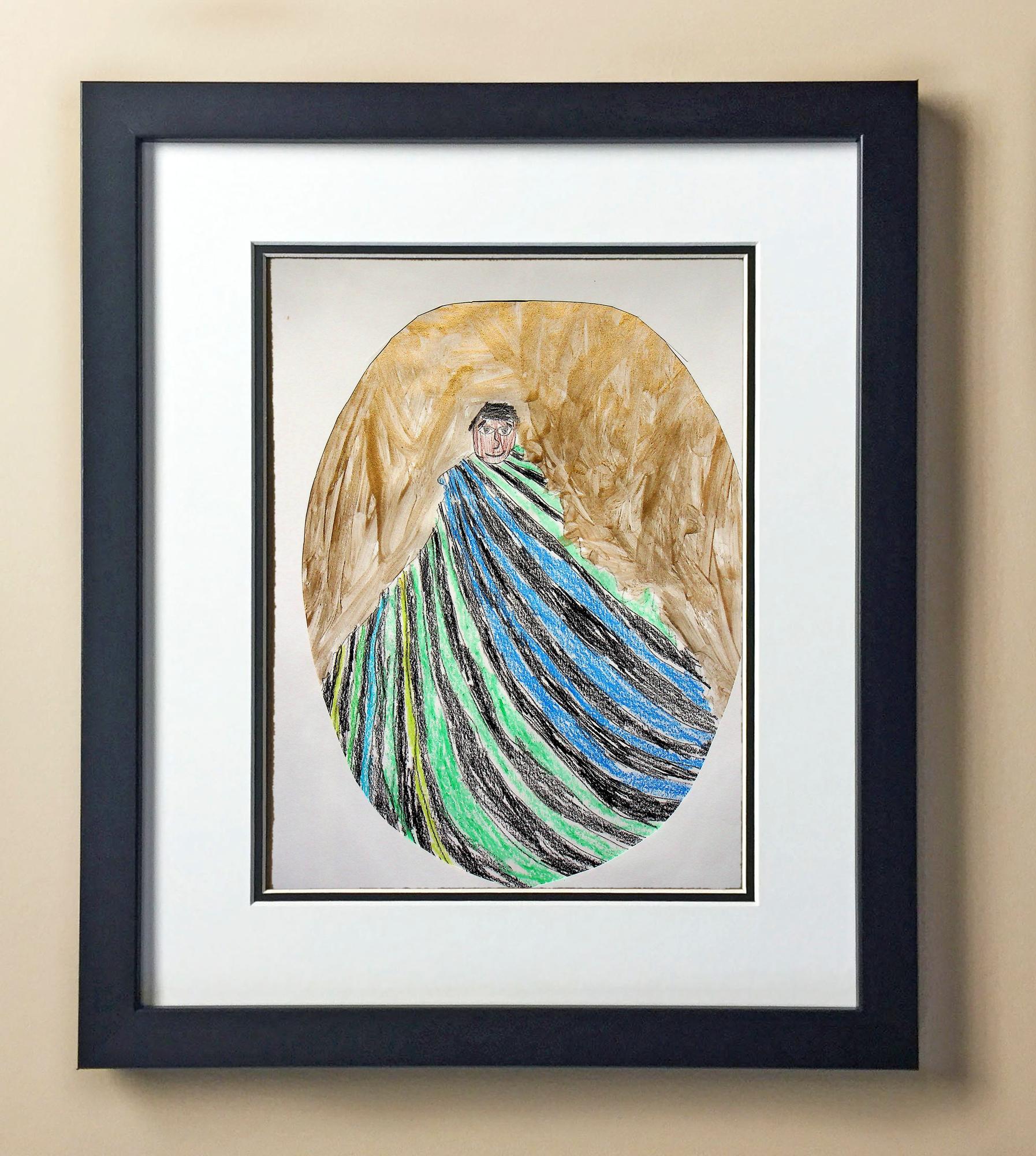 Included with the purchase is the Students Artwork, Frame, double matboard, shatter proof plexiglass, and a ready to hang backerboard with turnbuttons