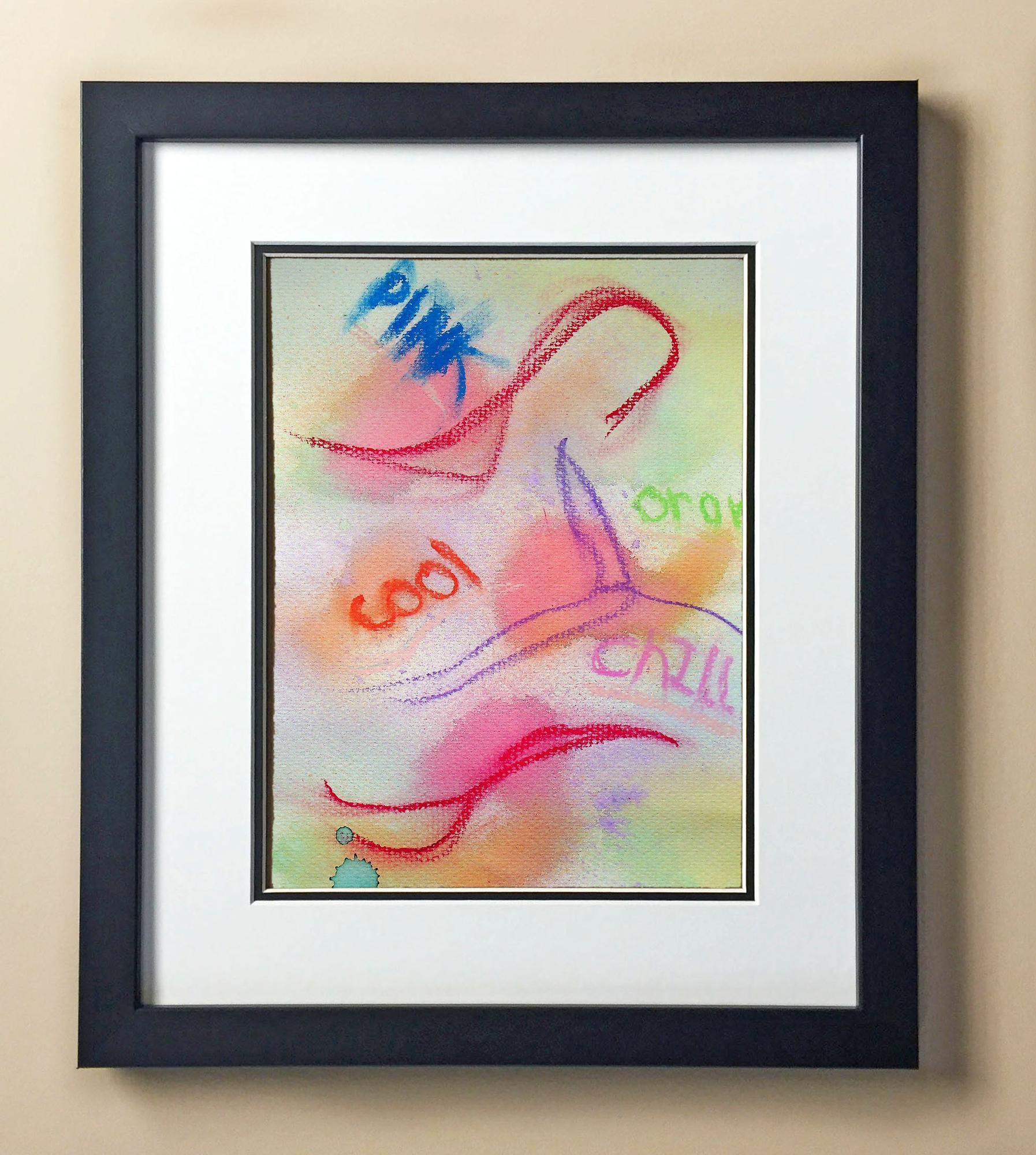 Included with the purchase is the Students Artwork, Frame, double matboard, shatter proof plexiglass, and a ready to hang backerboard with turnbuttons