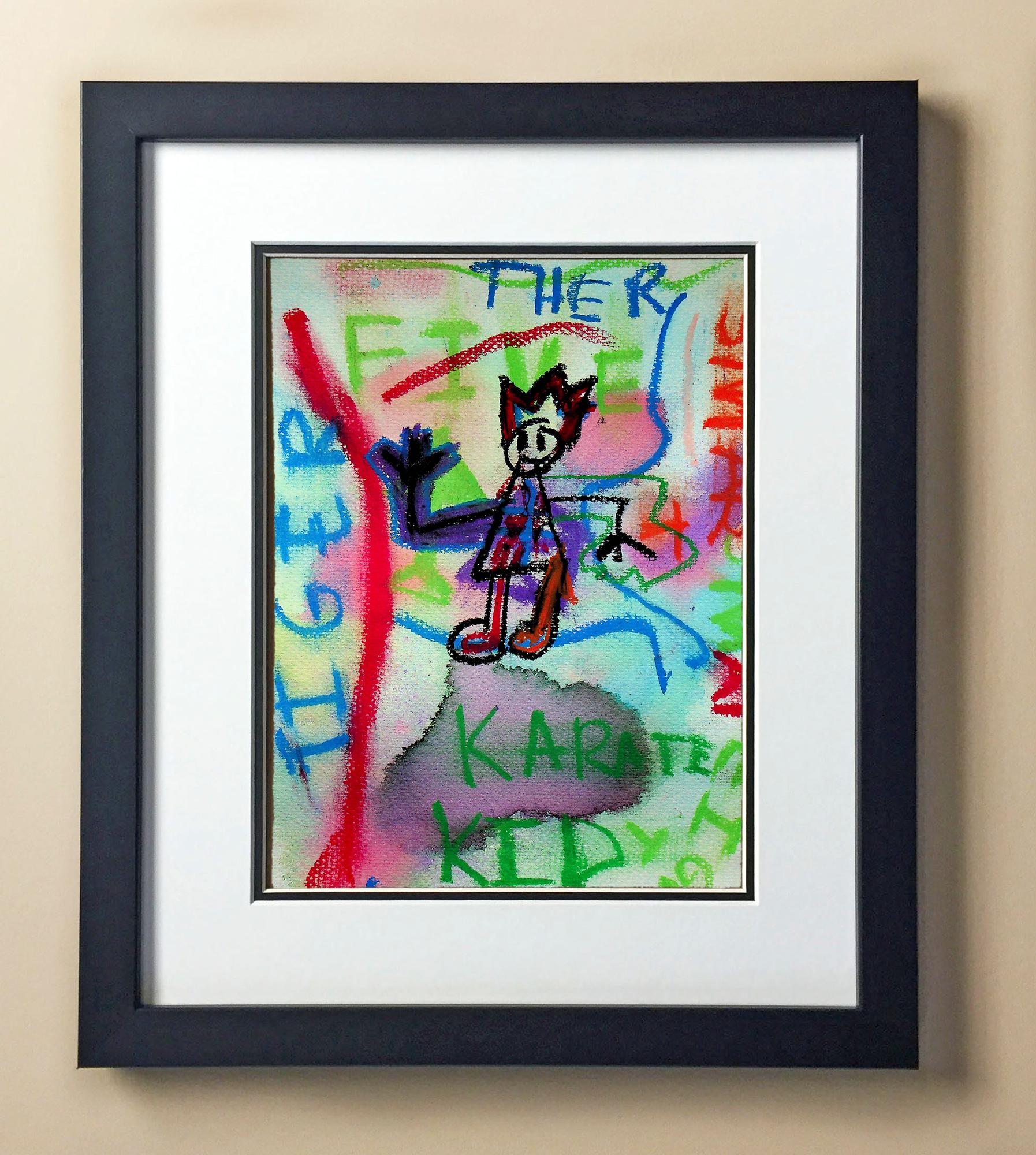 Included with the purchase is the Students Artwork, Frame, double matboard, shatter proof plexiglass, and a ready to hang backerboard with turnbuttons