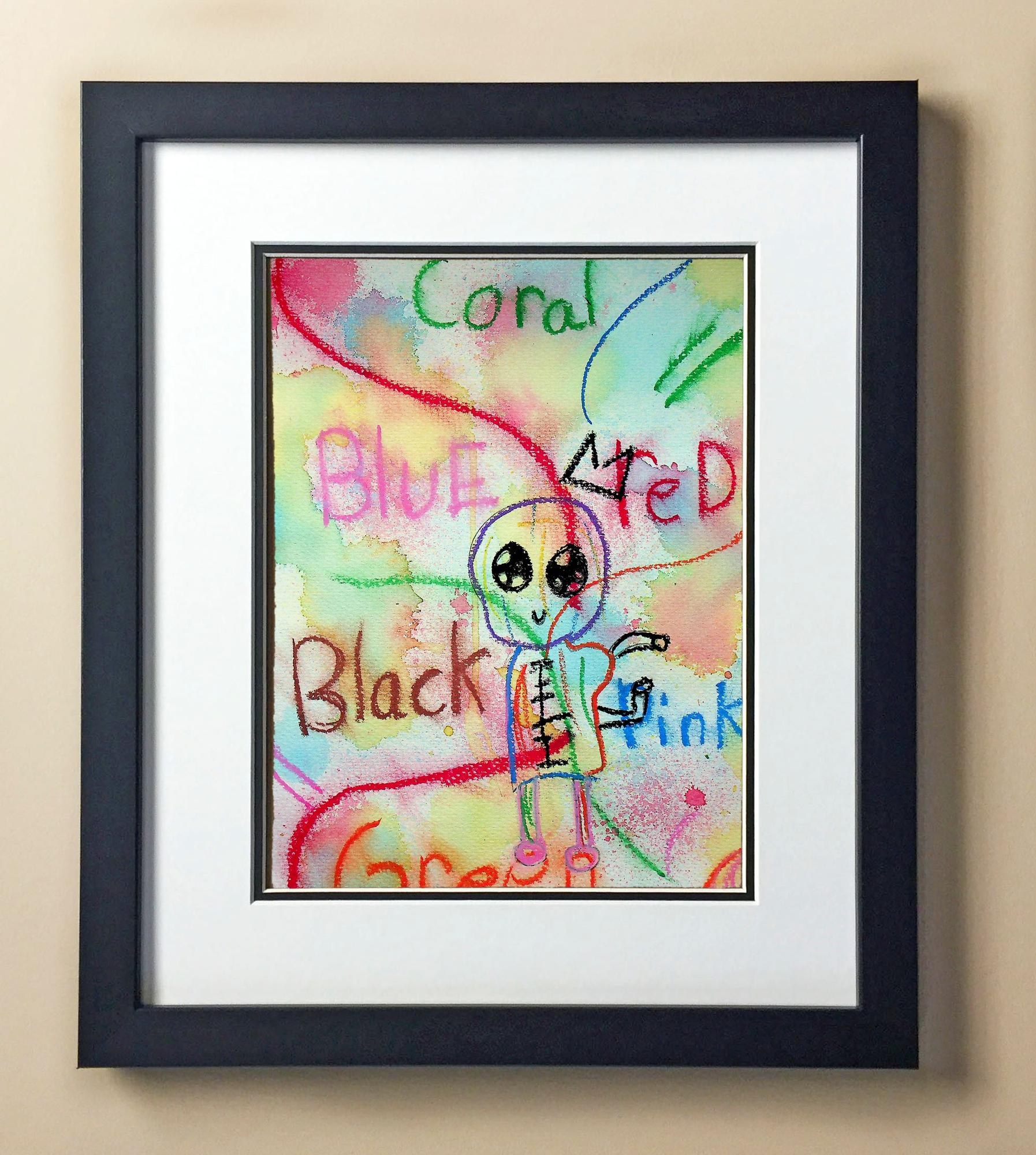 Included with the purchase is the Students Artwork, Frame, double matboard, shatter proof plexiglass, and a ready to hang backerboard with turnbuttons