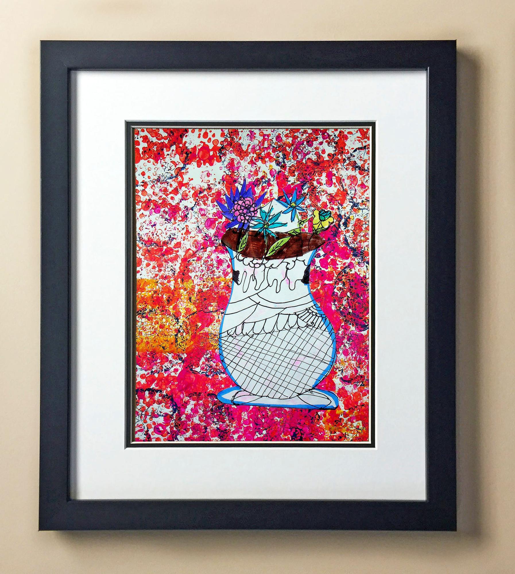 Included with the purchase is the Students Artwork, Frame, double matboard, shatter proof plexiglass, and a ready to hang backerboard with turnbuttons