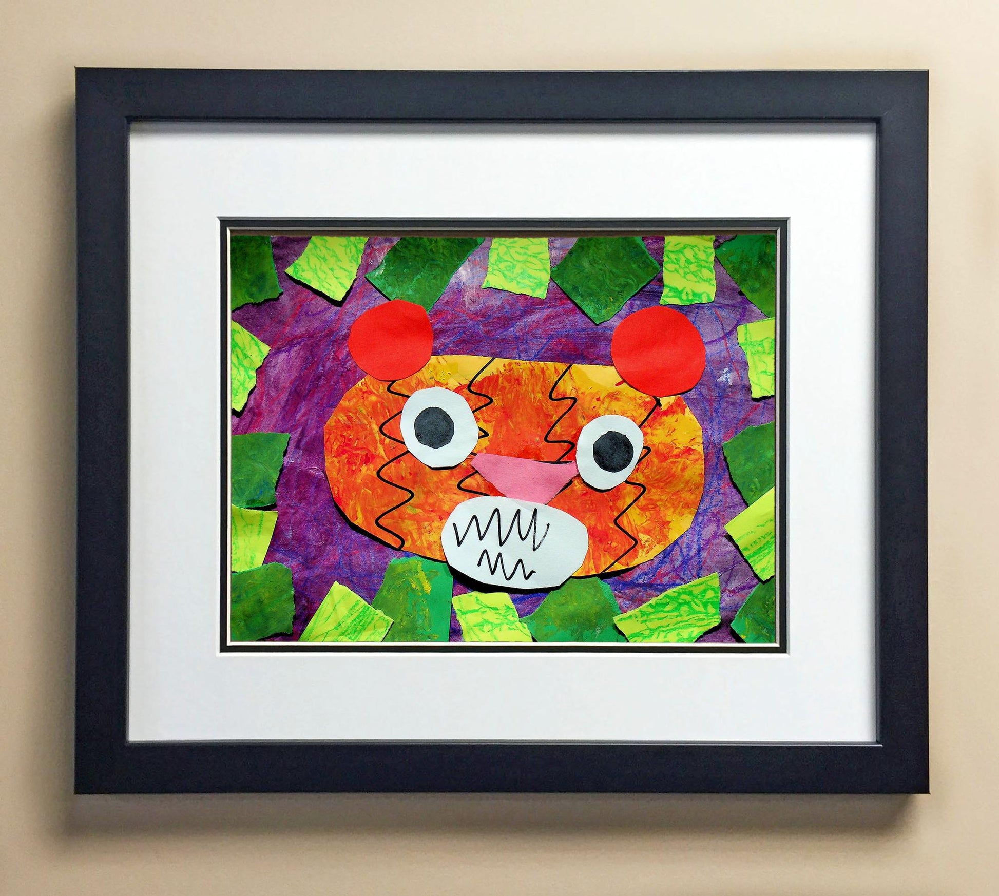 Included with the purchase is the Students Artwork, Frame, double matboard, shatter proof plexiglass, and a ready to hang backerboard with turnbuttons