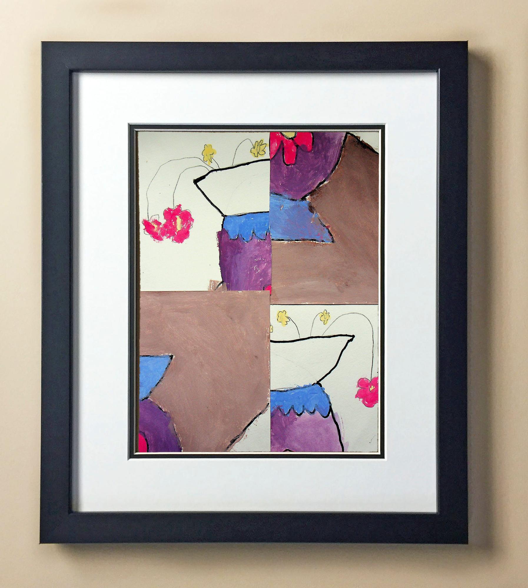 Included with the purchase is the Students Artwork, Frame, double matboard, shatter proof plexiglass, and a ready to hang backerboard with turnbuttons