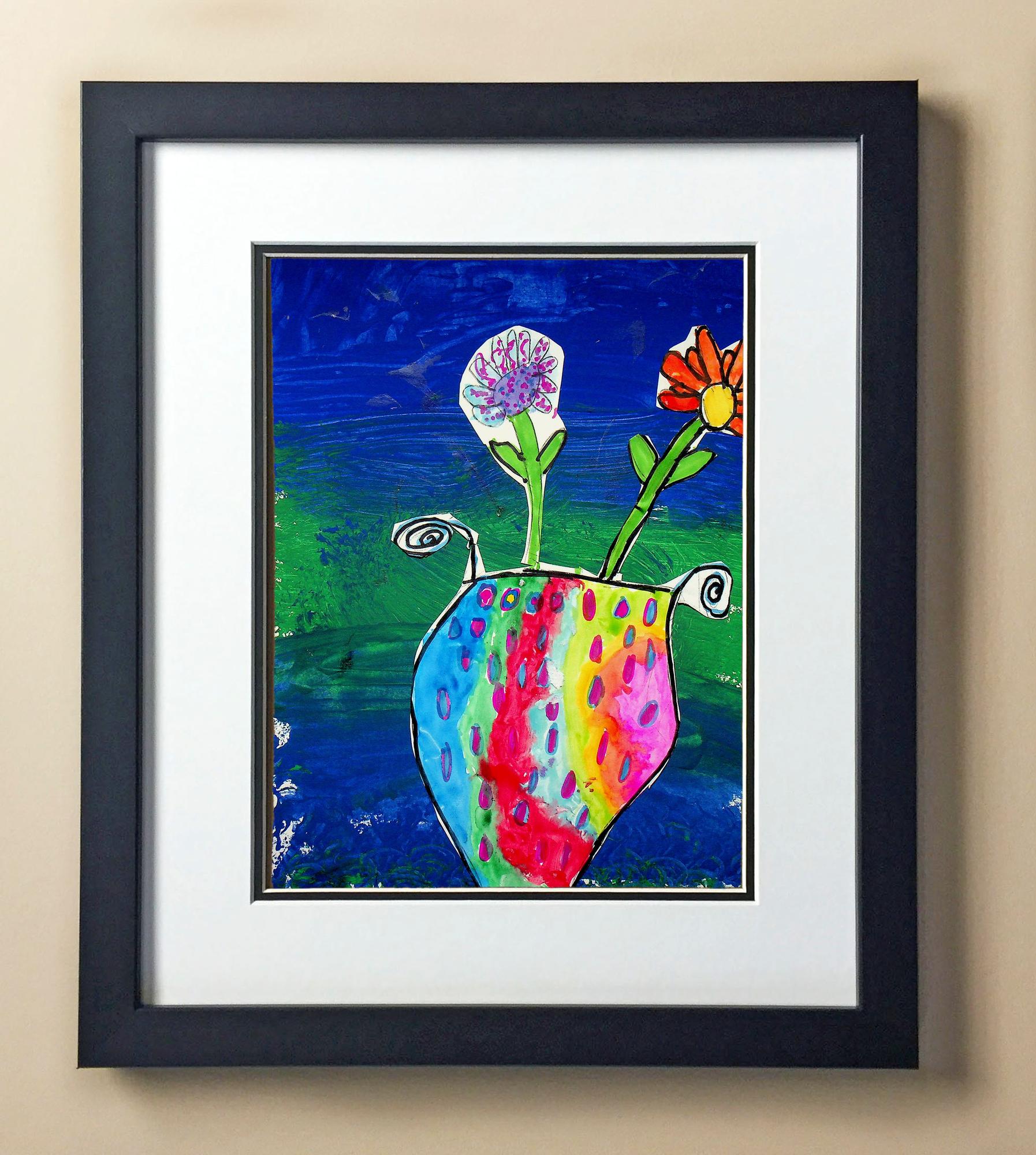 Included with the purchase is the Students Artwork, Frame, double matboard, shatter proof plexiglass, and a ready to hang backerboard with turnbuttons