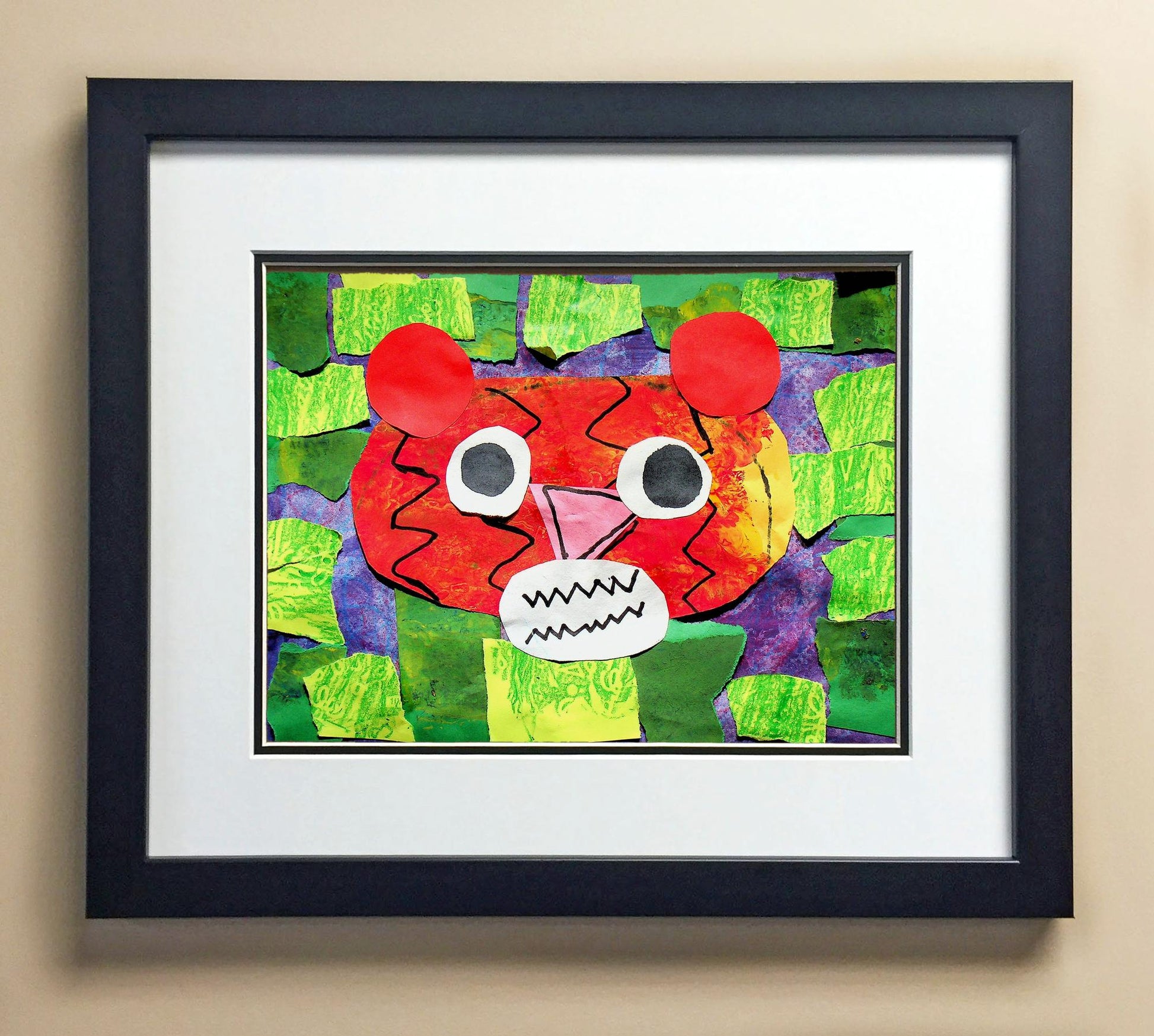 Included with the purchase is the Students Artwork, Frame, double matboard, shatter proof plexiglass, and a ready to hang backerboard with turnbuttons