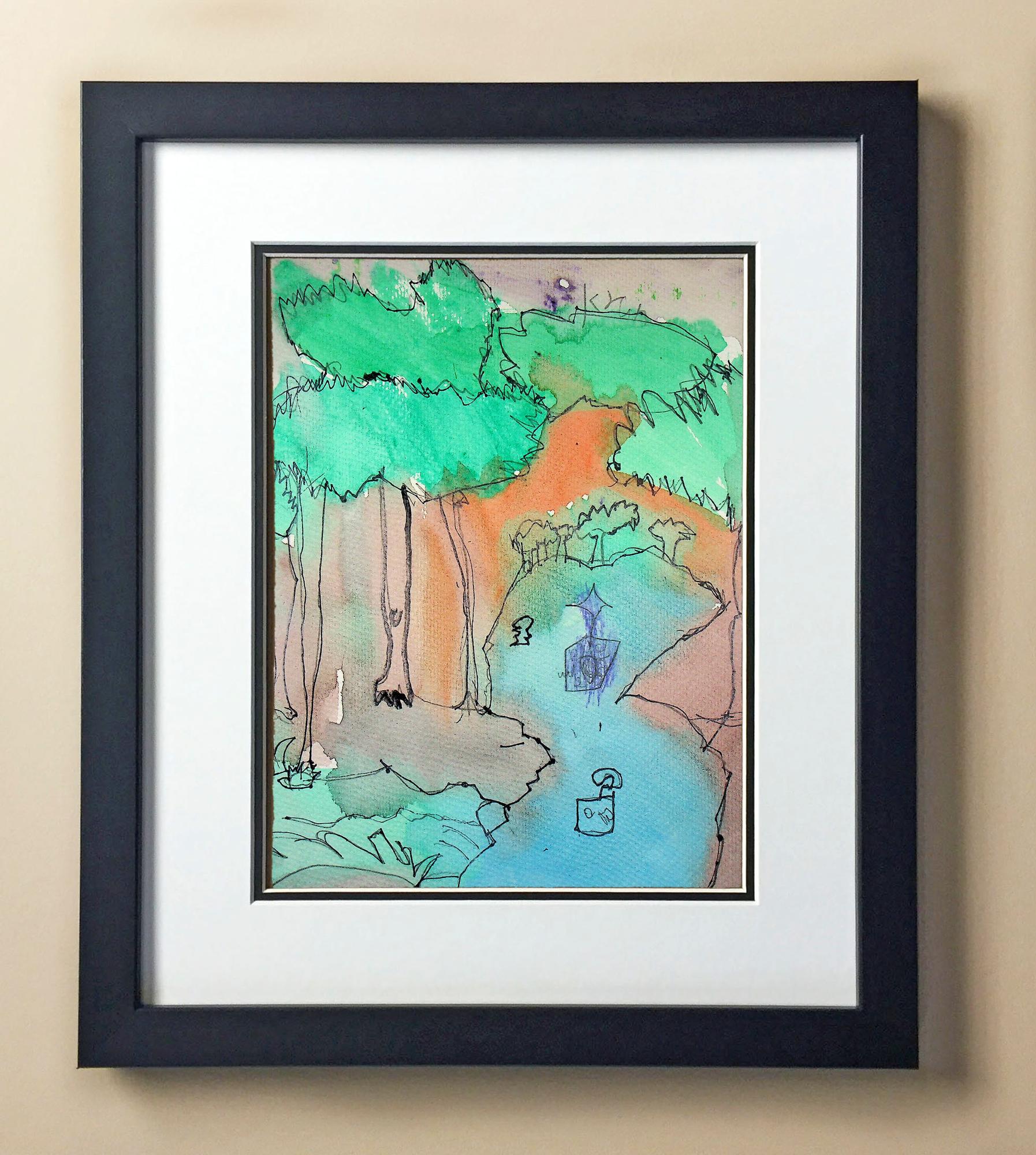 Included with the purchase is the Students Artwork, Frame, double matboard, shatter proof plexiglass, and a ready to hang backerboard with turnbuttons