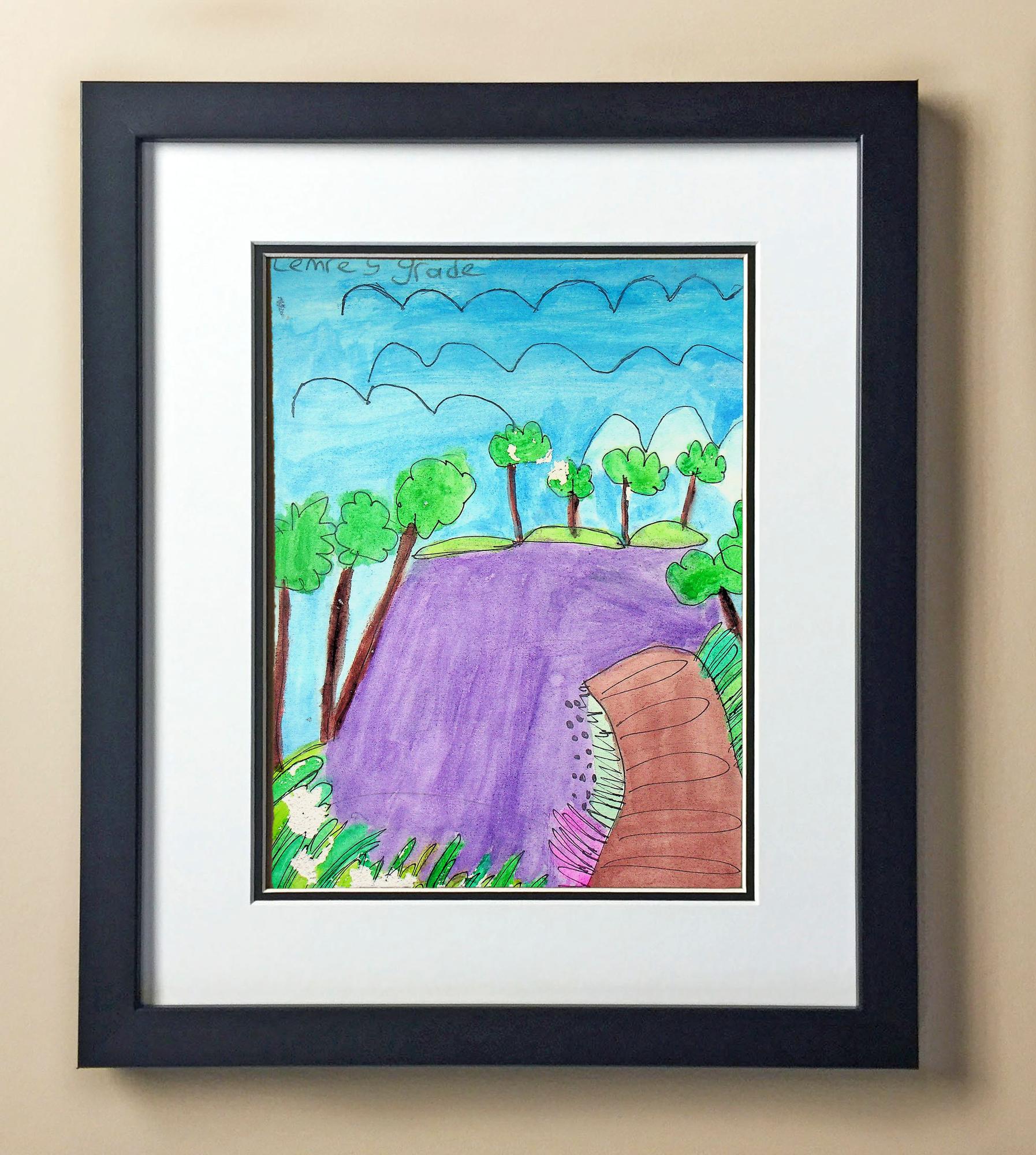 Included with the purchase is the Students Artwork, Frame, double matboard, shatter proof plexiglass, and a ready to hang backerboard with turnbuttons