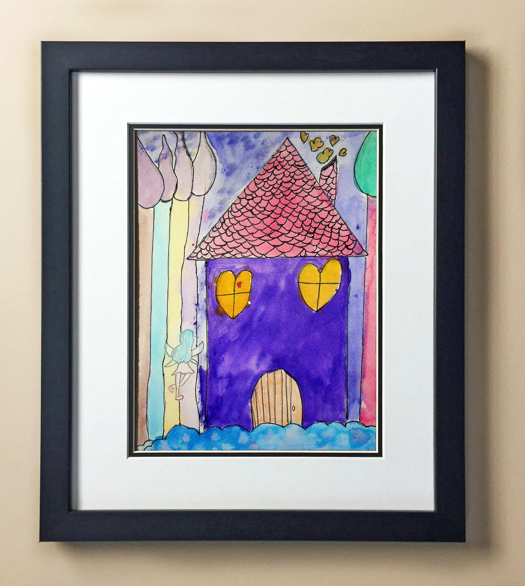 Included with the purchase is the Students Artwork, Frame, double matboard, shatter proof plexiglass, and a ready to hang backerboard with turnbuttons