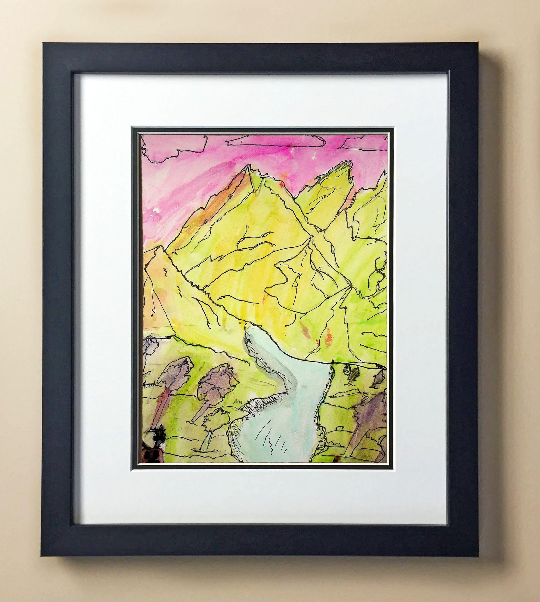 Included with the purchase is the Students Artwork, Frame, double matboard, shatter proof plexiglass, and a ready to hang backerboard with turnbuttons