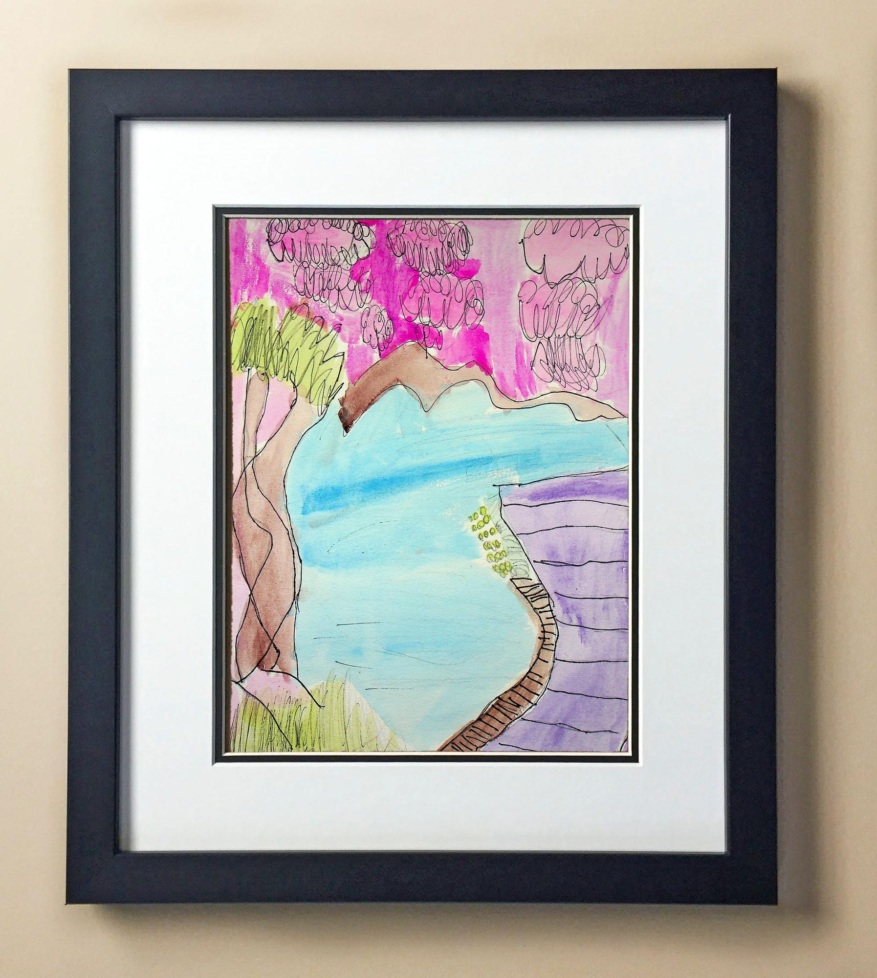 Included with the purchase is the Students Artwork, Frame, double matboard, shatter proof plexiglass, and a ready to hang backerboard with turnbuttons