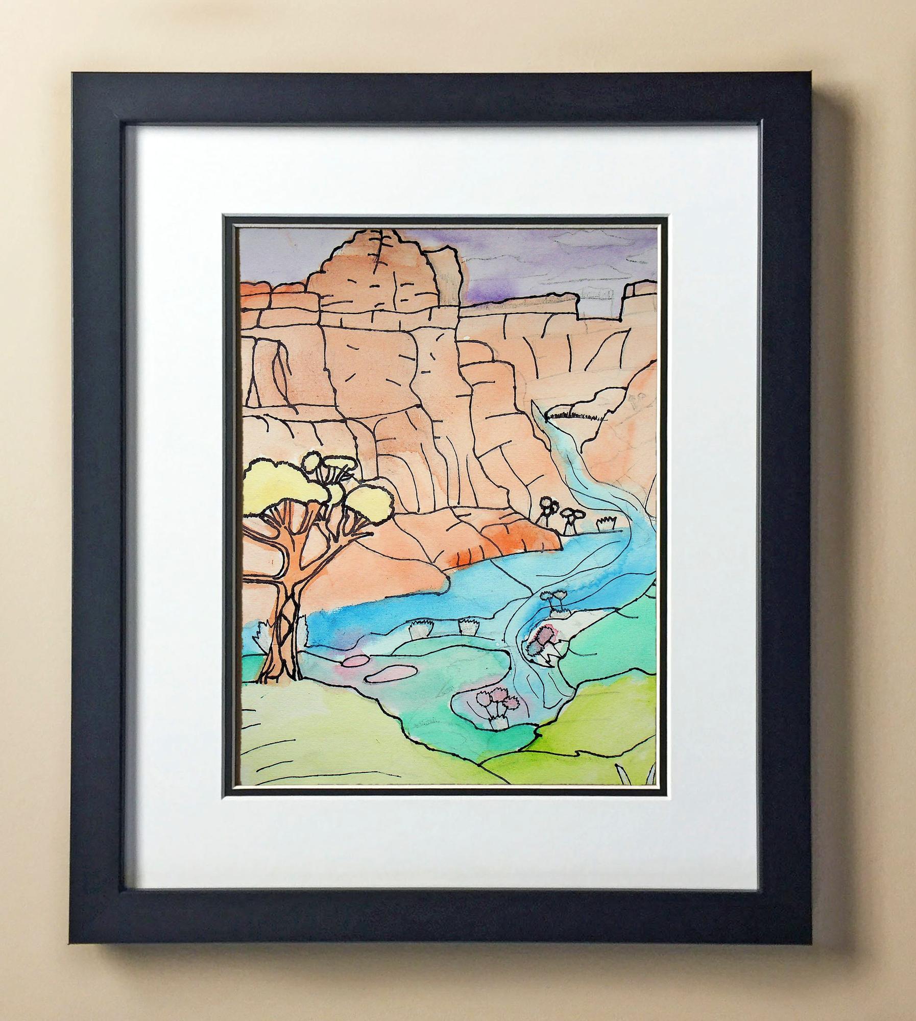 Included with the purchase is the Students Artwork, Frame, double matboard, shatter proof plexiglass, and a ready to hang backerboard with turnbuttons