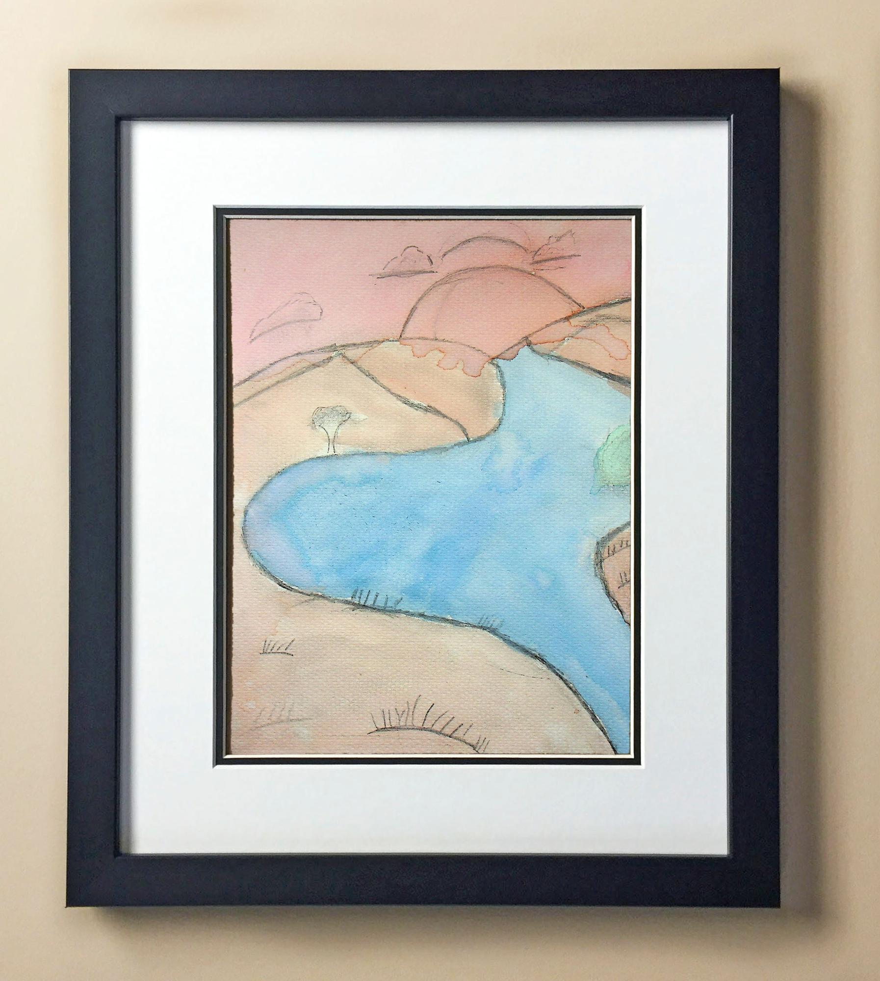 Included with the purchase is the Students Artwork, Frame, double matboard, shatter proof plexiglass, and a ready to hang backerboard with turnbuttons