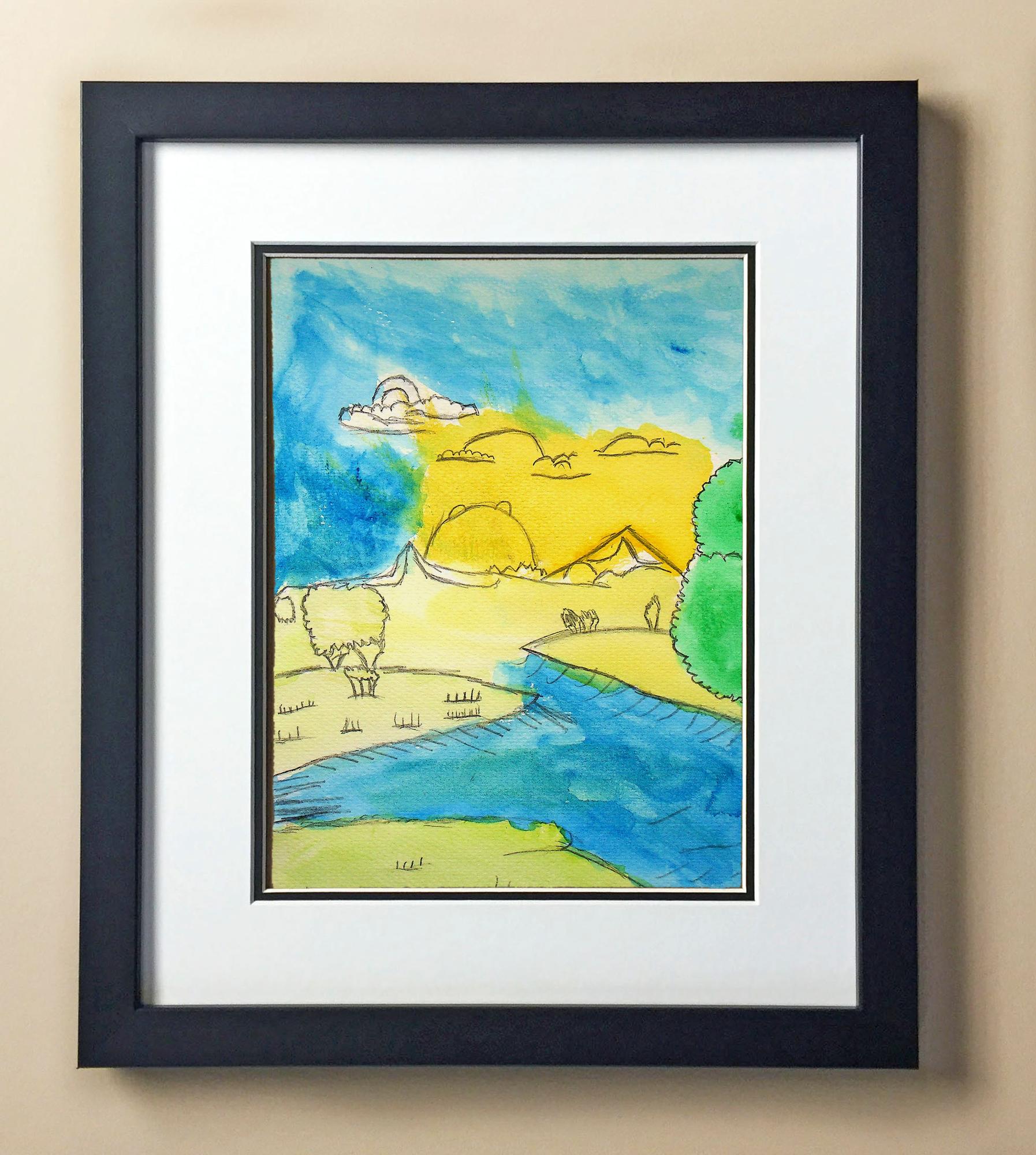 Included with the purchase is the Students Artwork, Frame, double matboard, shatter proof plexiglass, and a ready to hang backerboard with turnbuttons