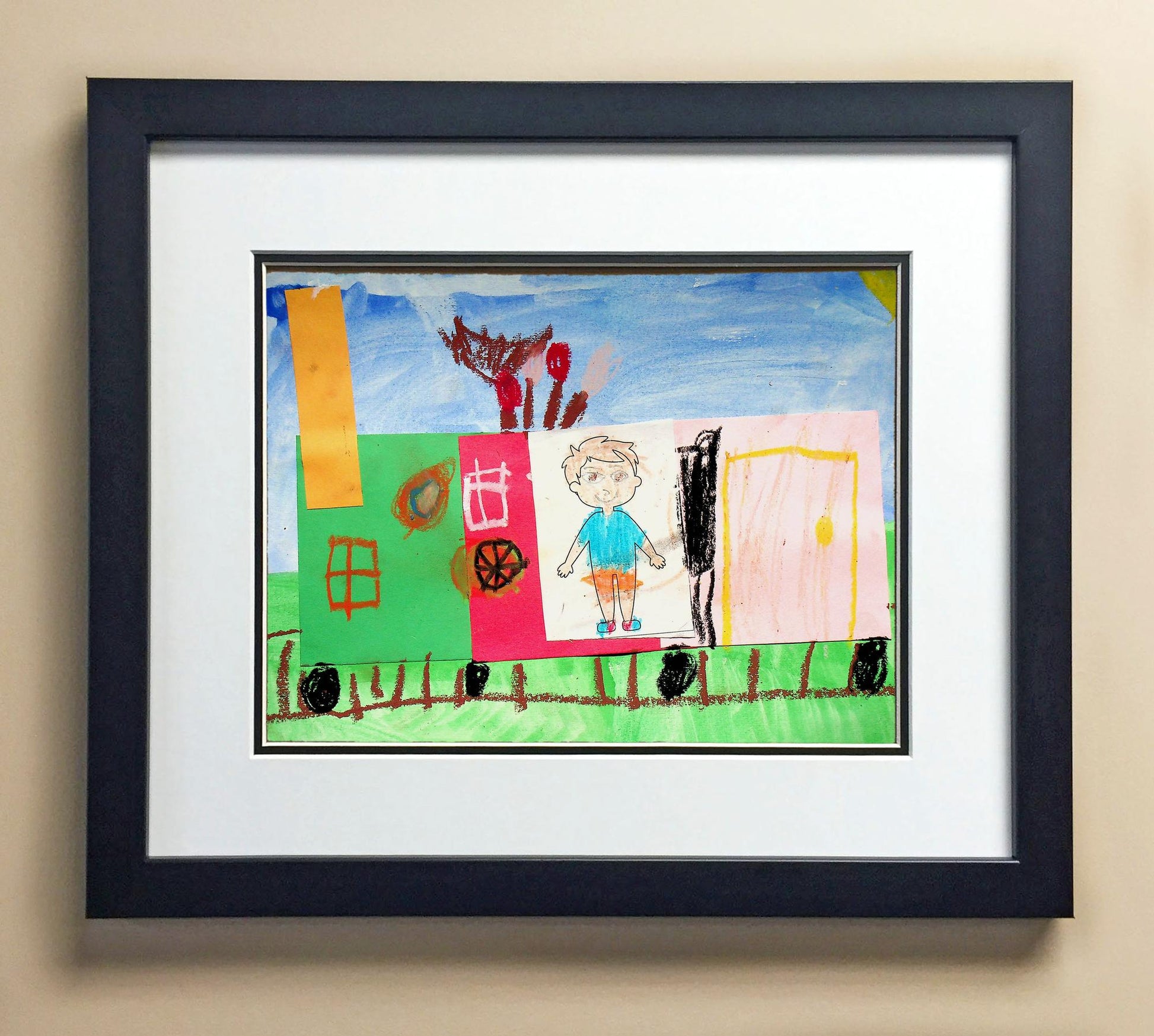 Included with the purchase is the Students Artwork, Frame, double matboard, shatter proof plexiglass, and a ready to hang backerboard with turnbuttons
