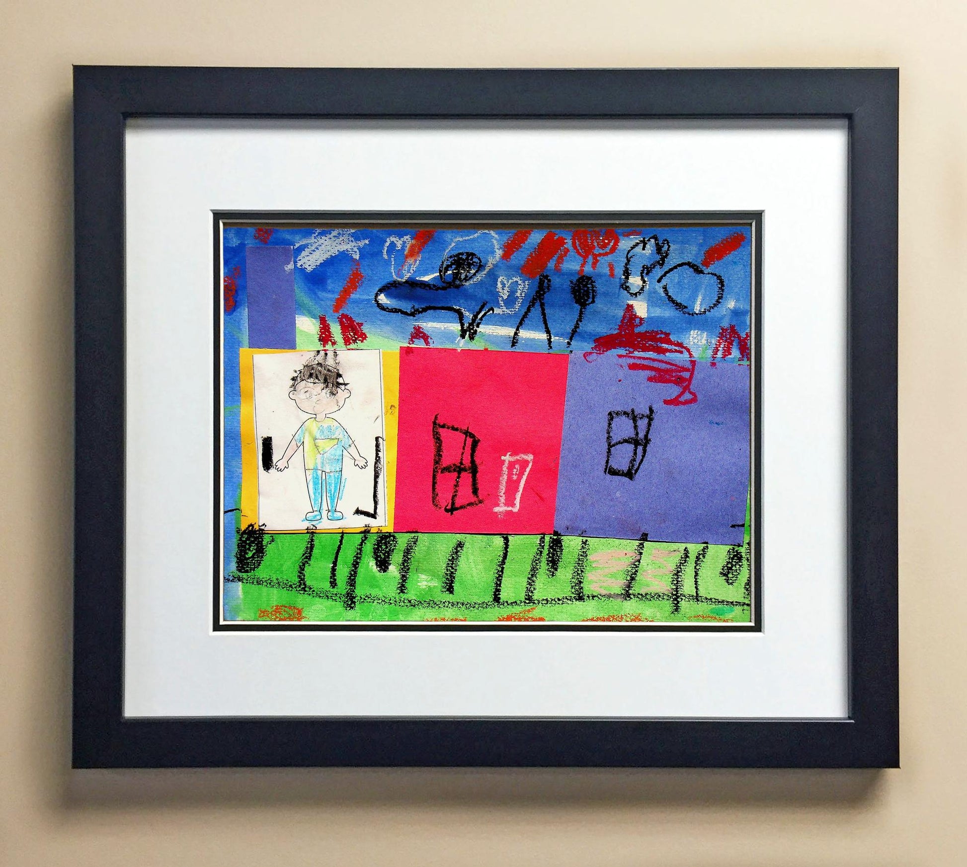 Included with the purchase is the Students Artwork, Frame, double matboard, shatter proof plexiglass, and a ready to hang backerboard with turnbuttons